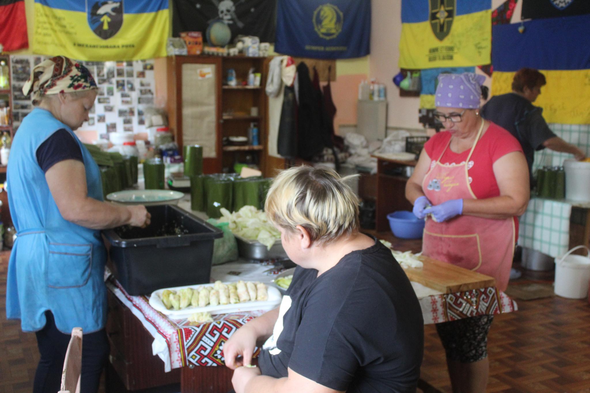 — Хіба є українки без ножа? Єдине, що ми з рибою сьогодні не робили — так це не ловили її, — каже помічниця «Міцного тилу». Ще недавно вона була постійним помічником ініціативної волонтерської групи, а тепер працює на підприємстві і приходить допомагати «Міцному тилу», коли у неї є така можливість.