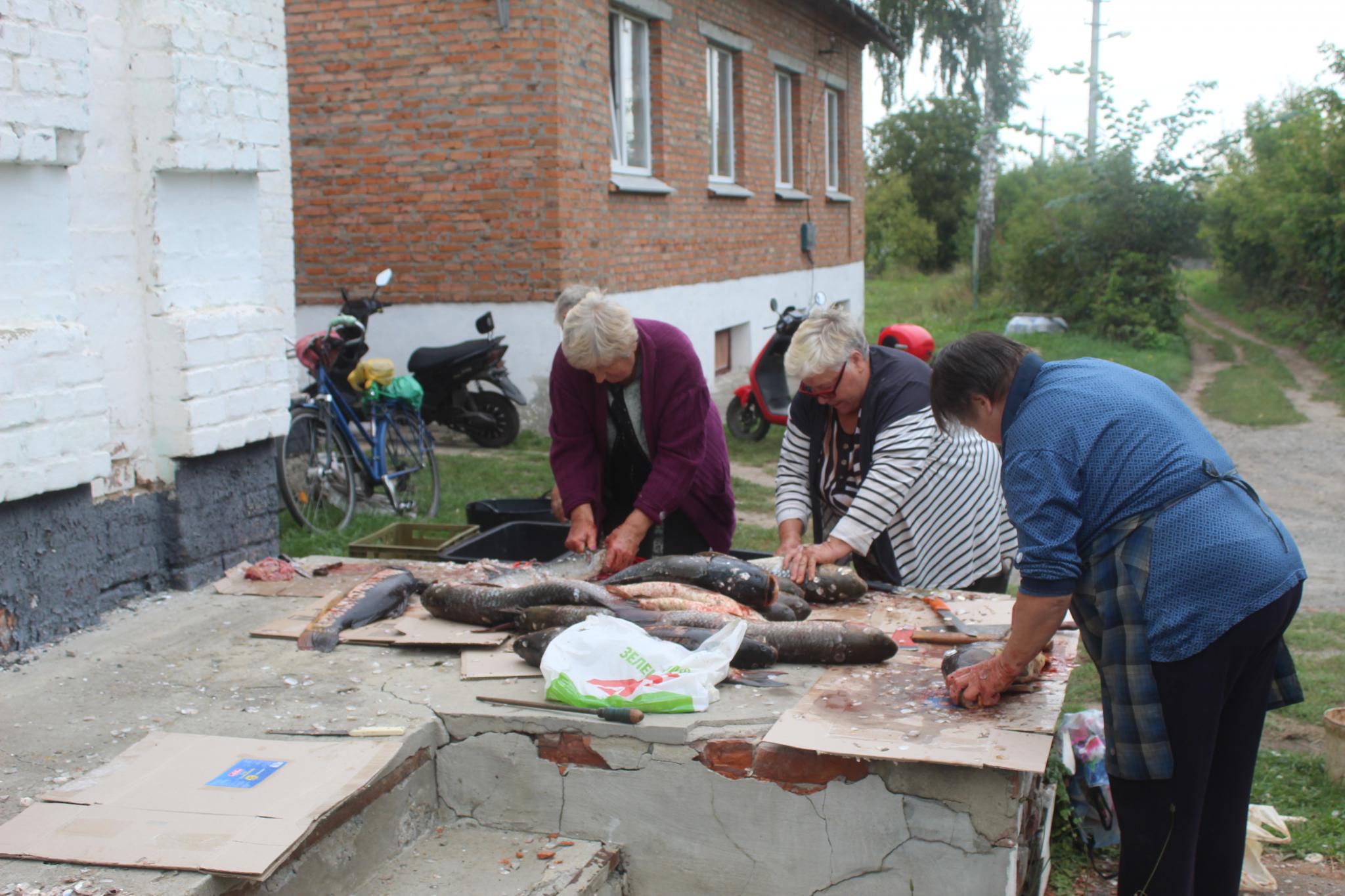 — Ми сьогодні планували робити голубці та коли Микола привіз рибу, то кинули клич селом, щоб люди прийшли на допомогу. Дякую дівчатам, збіглися почистити і порізати рибу.