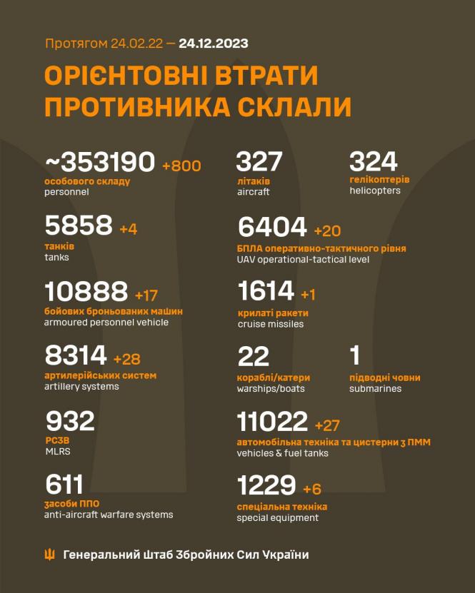 Протягом минулої доби відбулося 81 бойове зіткнення. Загалом ворог завдав 11 ракетних та 34 авіаційних удари, здійснив 62 обстріли з реактивних систем залпового вогню по позиціях наших військ та населених пунктах. Внаслідок російських терористичних атак, на жаль, є загиблі та поранені серед цивільного населення. Руйнувань та пошкоджень зазнали приватні житлові будинки та інша цивільна інфраструктура.