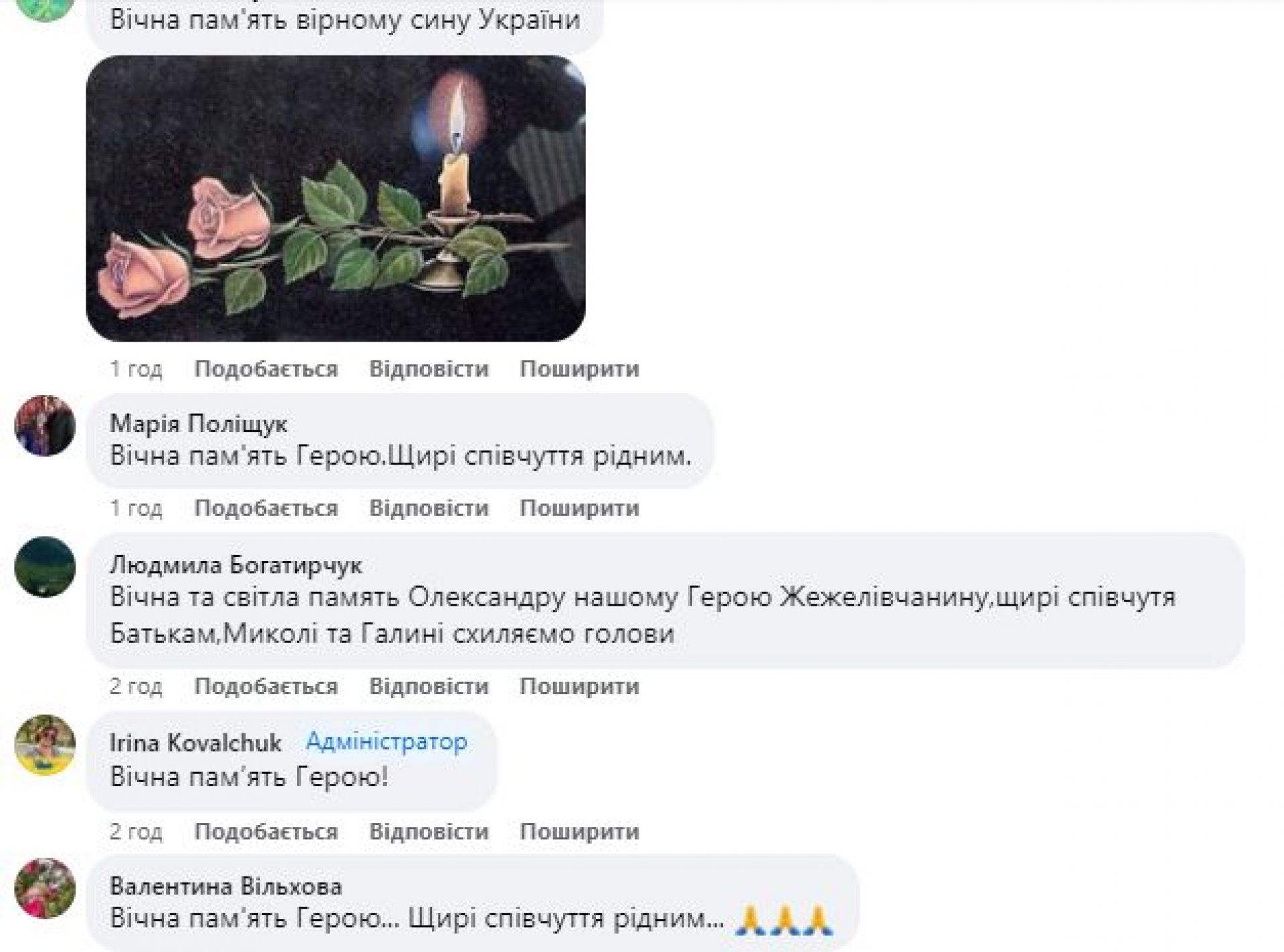 - На Мар'їнському напрямку 7 листопада 2023 року обірвалося життя нашого земляка, жежелівчанина, військовослужбовця Збройних сил України Олександра Гуменюка