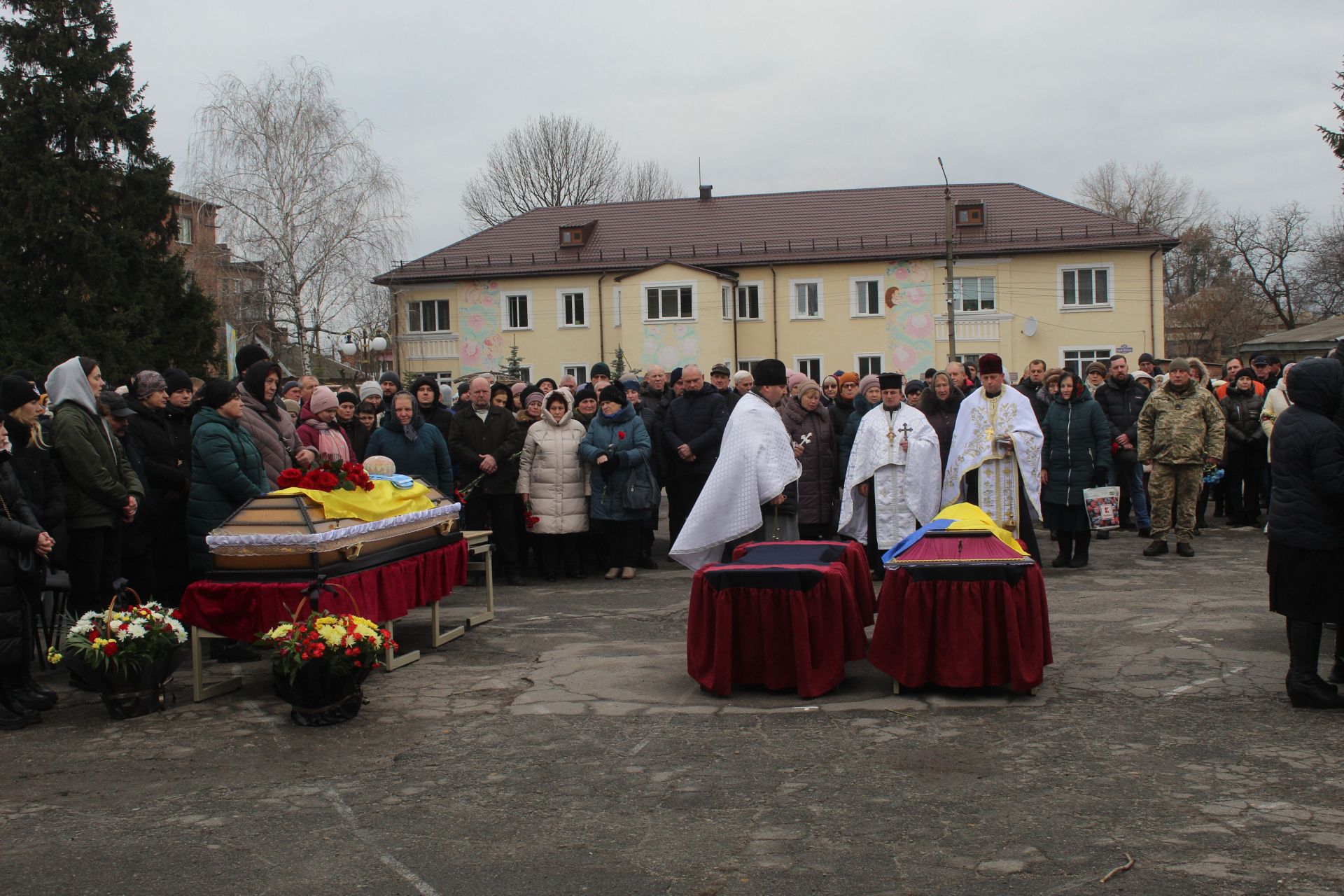 Прощалася громада з своїми захисниками довго, адже пішли до небесного війська знов одні з найкращих. Серед присутніх на мітингу крім рідних родичів, сусідів були друзі, однокласники загиблих воїнів та колеги по роботі їхніх дружин. Ми хотіли зібрати, якнайбільше інформації про героїв, тільки, яку інформацію ми могли почути від заплаканих лиць.