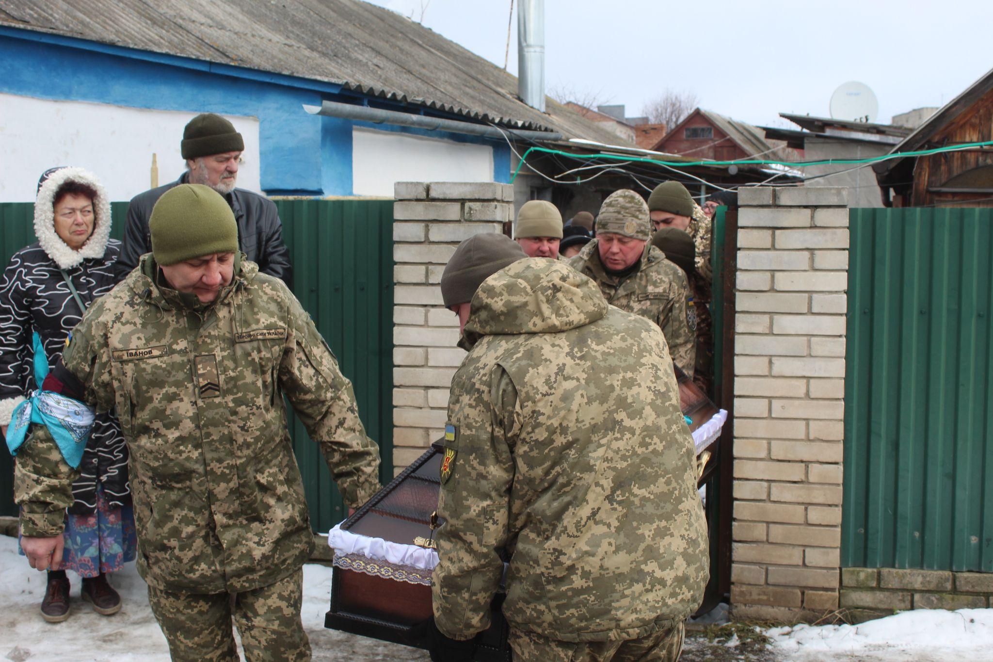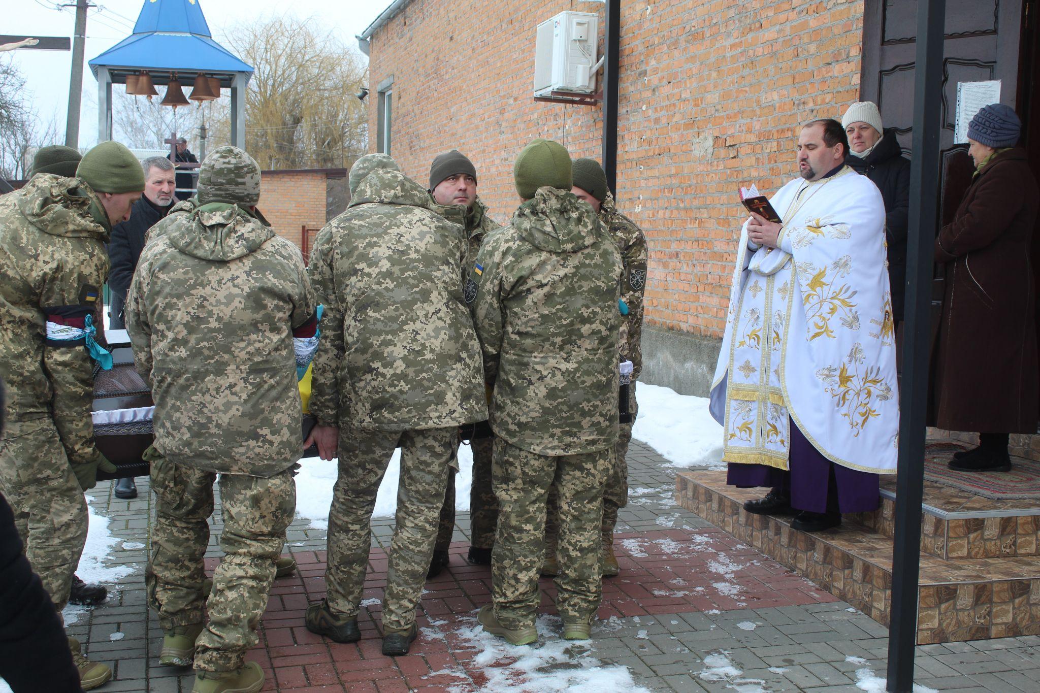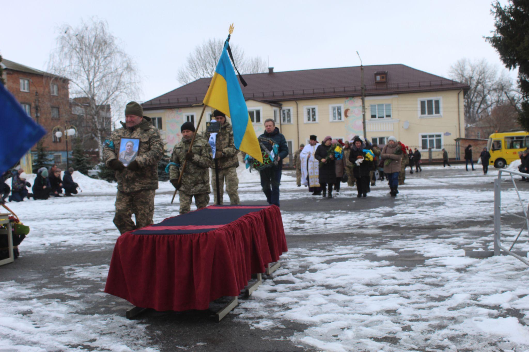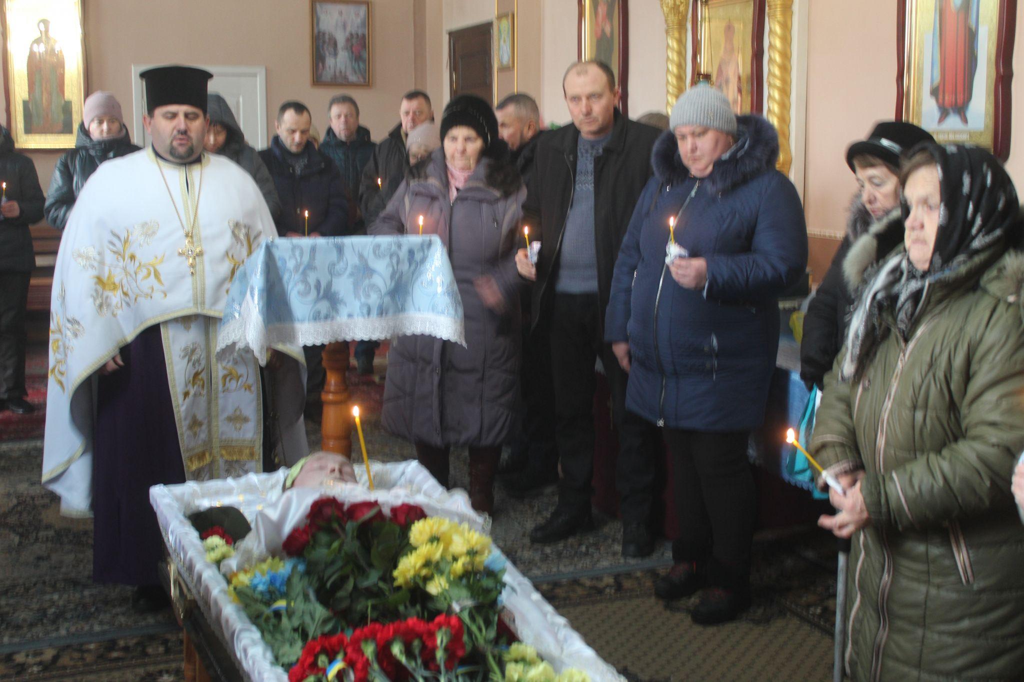 Зустріла громада свого захисника 28 січня живим коридором. Спочатку з ним прощалися біля будинку Героя, а родичі, куми, сусіди, близькі друзі висловлювали співчуття родині загиблого.