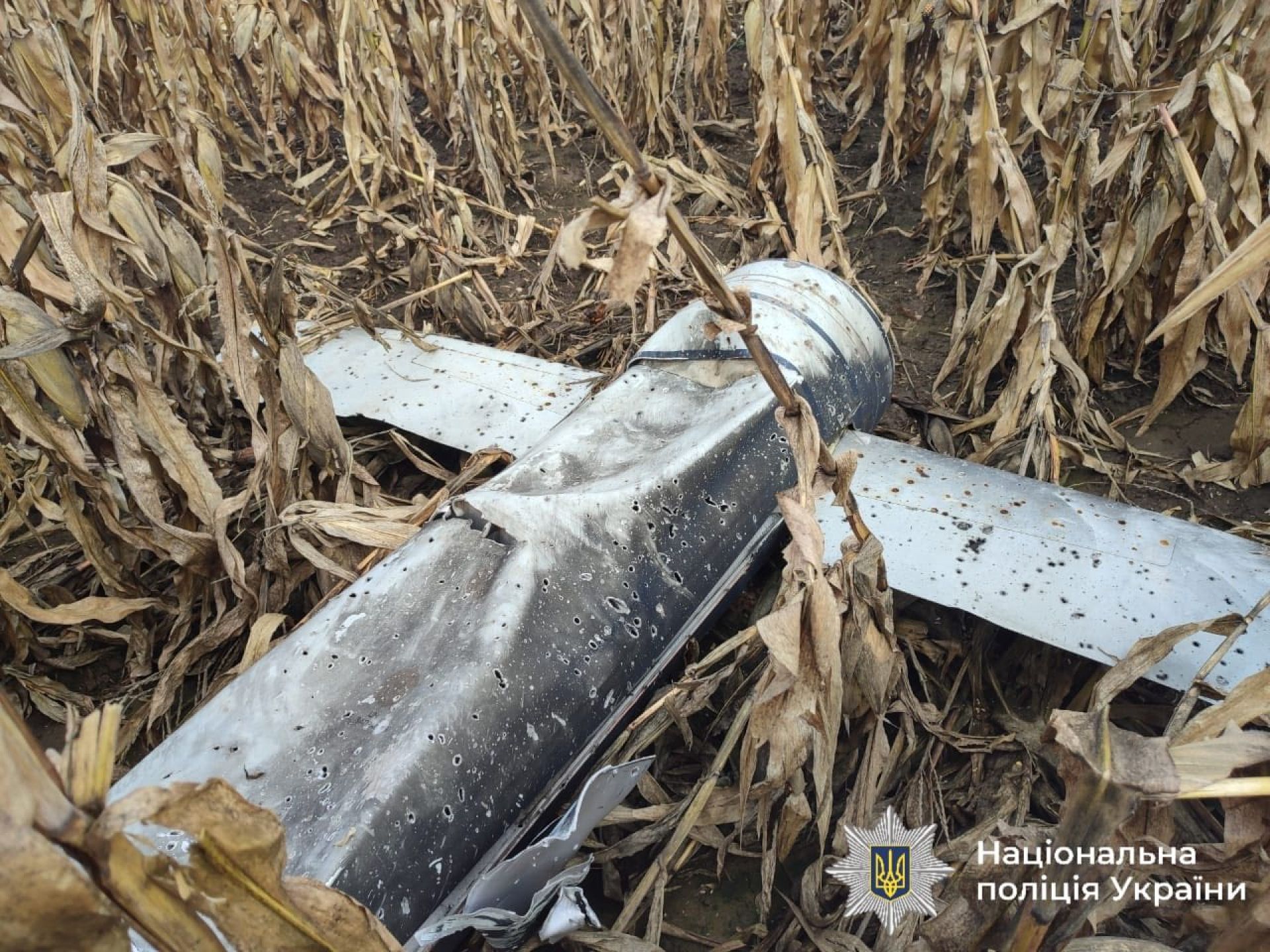 - Після масованих повітряних атак місцеві аграрії, які збирають врожай кукурудзи, виявили на територіях сільськогосподарських угідь уламки збитих російських БпЛА, а також частини крилатої ракети.