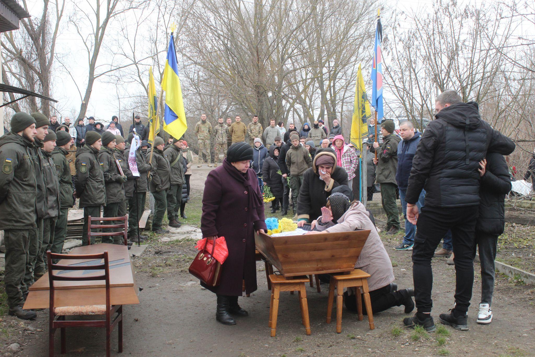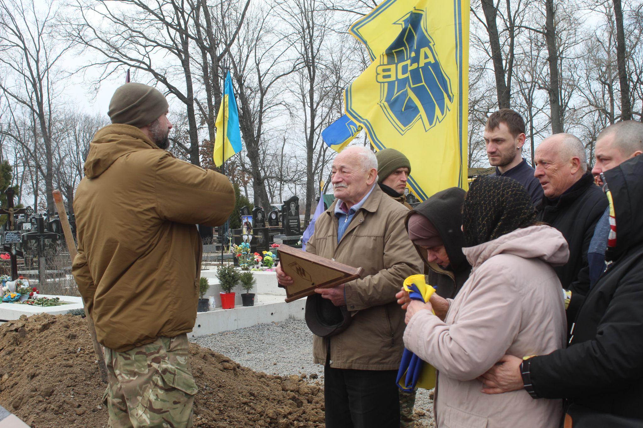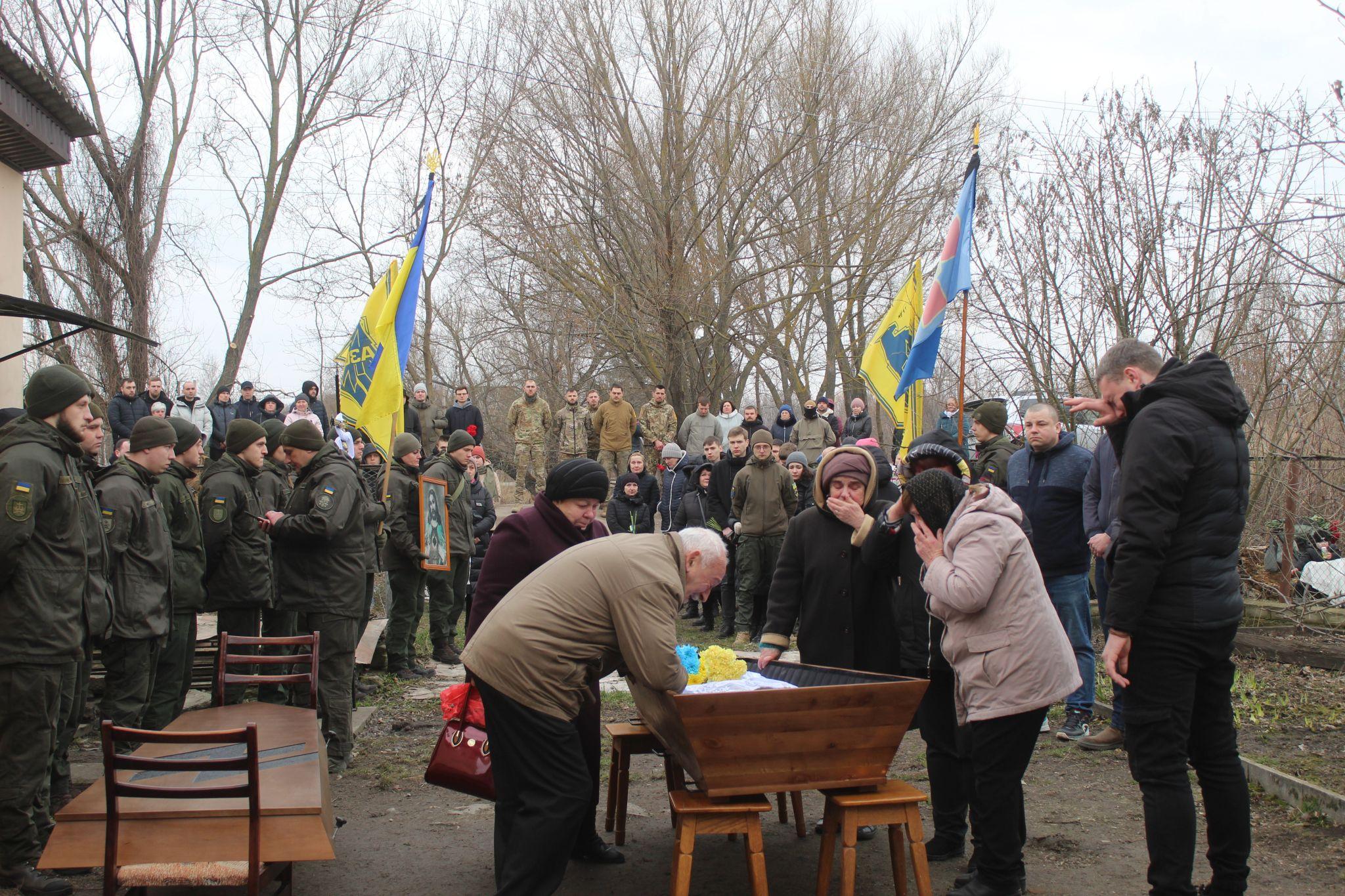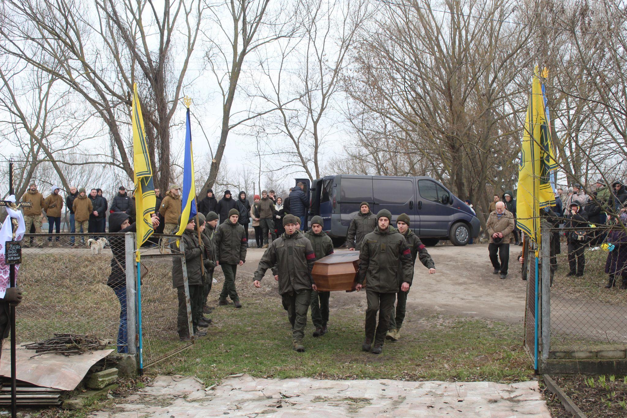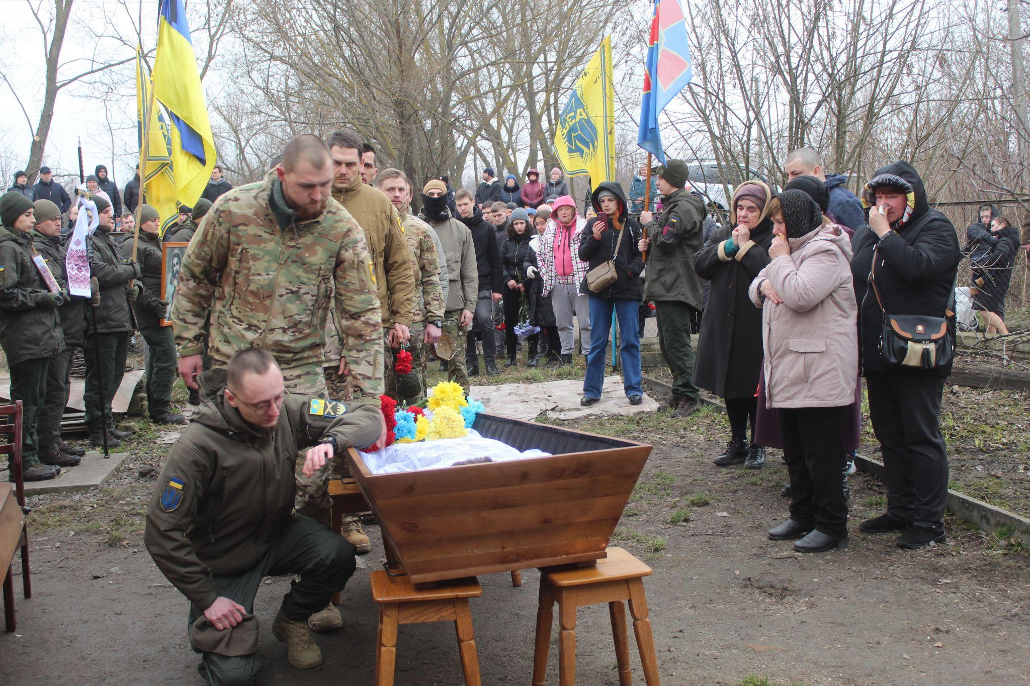 Зустріла громада свого захисника 2 березня живим коридором по всьому маршруту траурного кортежу.
