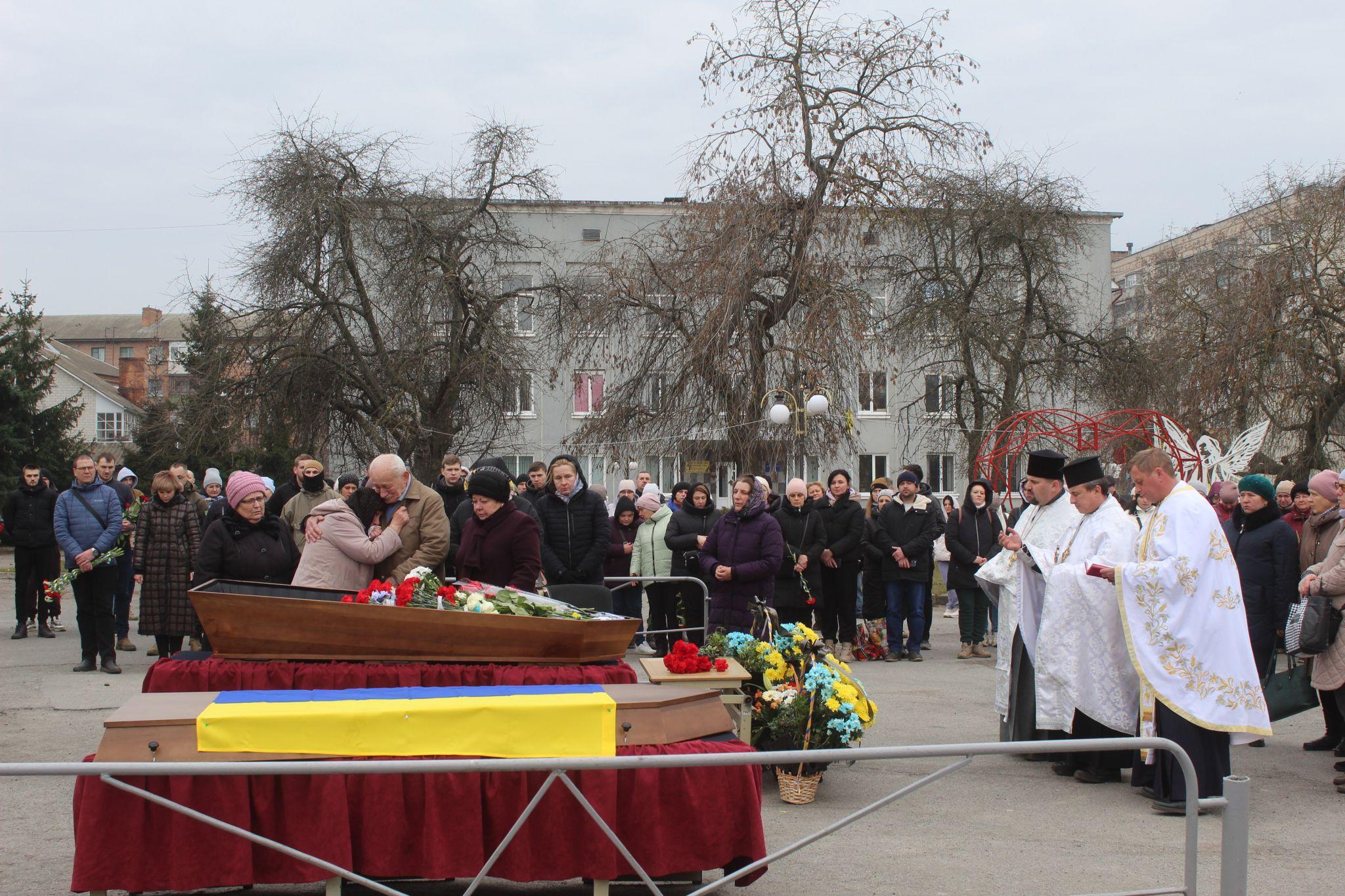 В цьому ж складі священники супроводжували траурну колону на площу. Там пройшов за загиблим воїном мітинг скорботи і пам’яті.