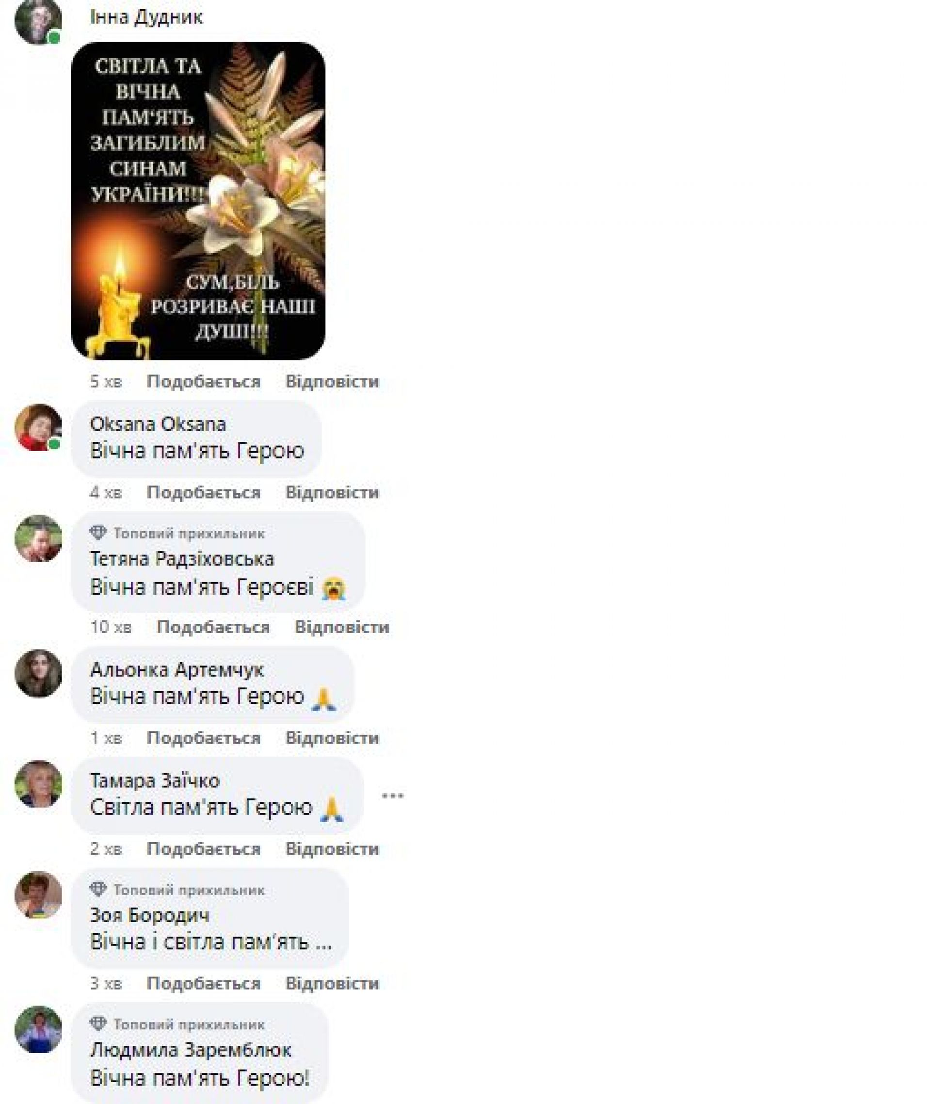— На жаль, знову маємо лиху звістку… Щирі співчуття рідним та вічна слава Герою! Додаткова інформація буде повідомлена згодом.
