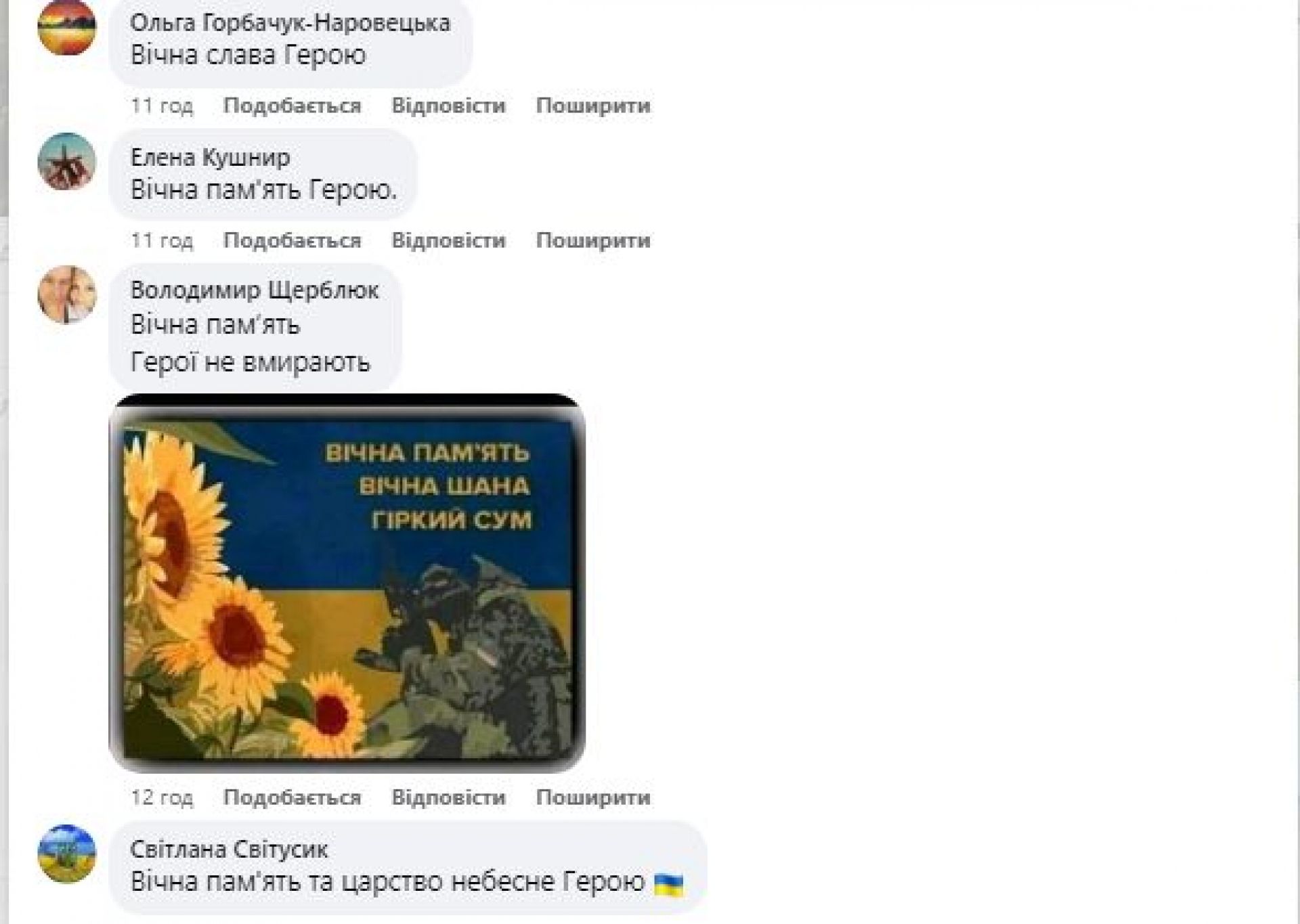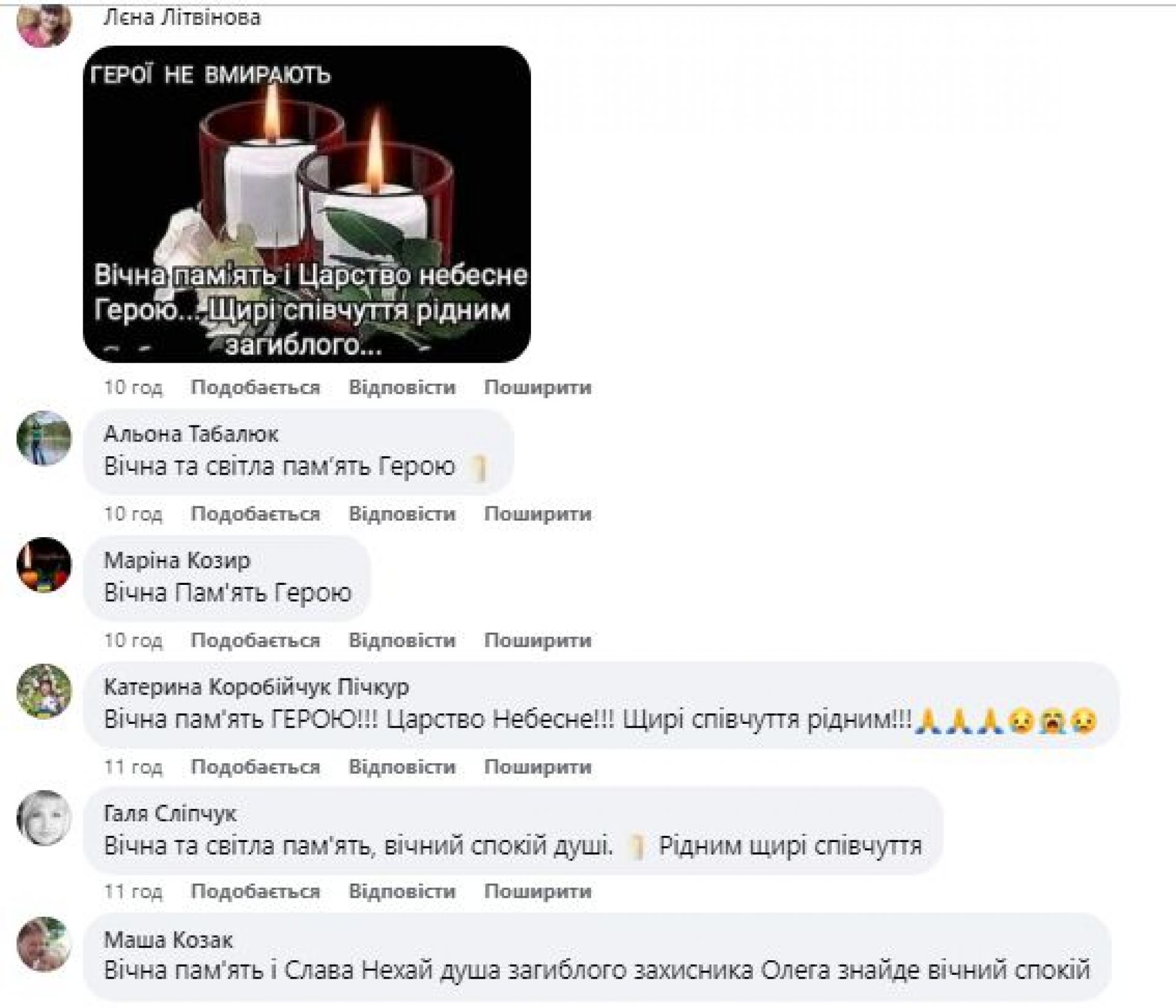 — Дружній, енергійний, привітний, життєрадісний, небайдужий до долі своєї країни, мужній і сміливий... Таким залишиться Олег у пам'яті кожного, хто його знав особисто. Висловлюємо глибокі співчуття рідним, — йдеться у дописі