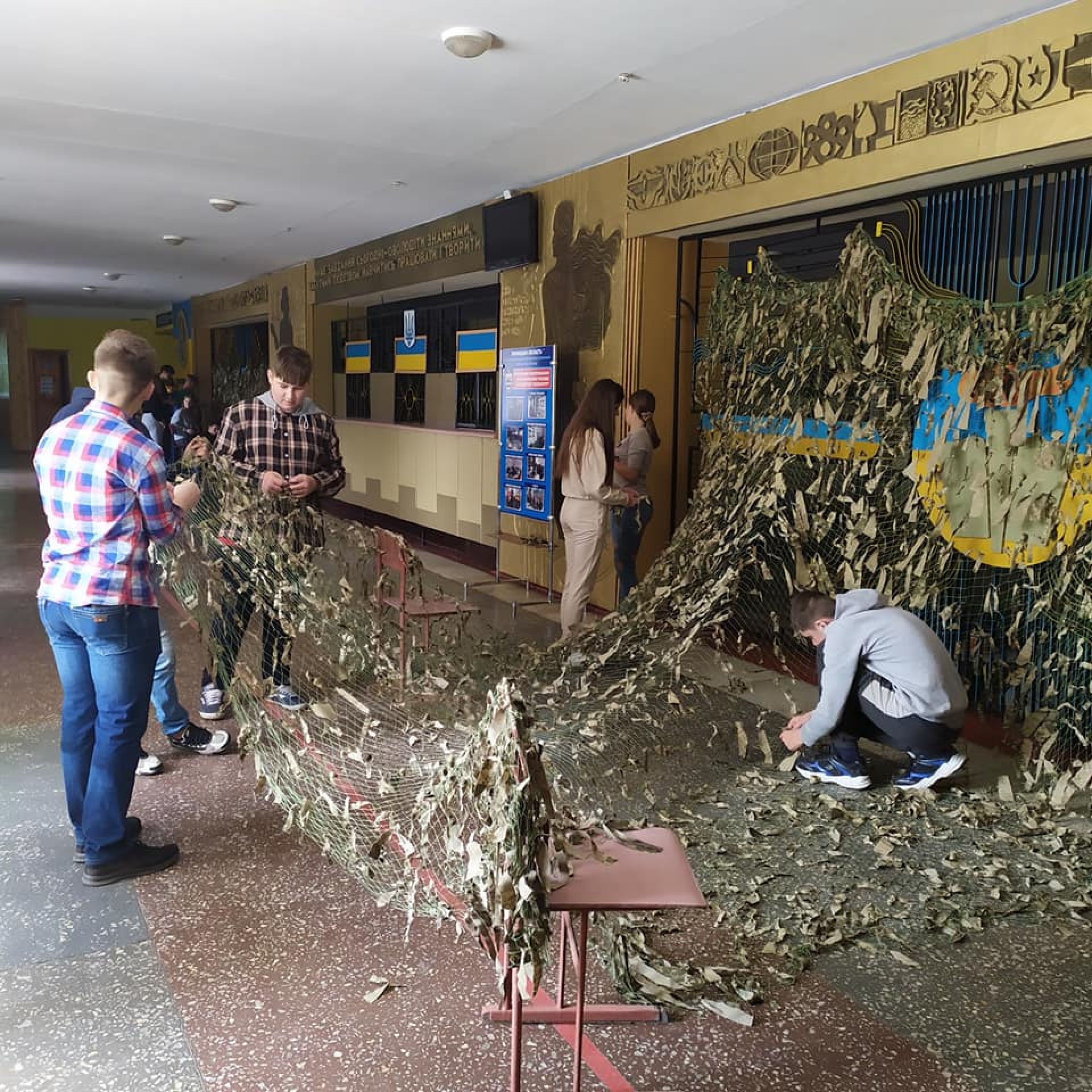 - Учнівський та педагогічний колектив училища надає волонтерську допомогу з плетіння маскувальних сіток для військової техніки. Днями знову відправили чергову партію маскувальних сіток