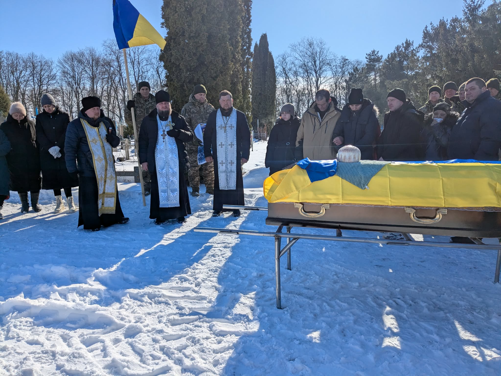 Попрощавшись з «Барні» біля будинку, кортеж з тілом Героя рушив до храму Покрови Пресвятої Богородиці. Чин похорон провели настоятель храму отець Олег, отець Олексій з Кордишівки та отець Валерій з Непедівки. Після особливого богослужіння, що поєднувало церковні традиції (відспівування) та військові почесті, траурна колона в супроводі священників рушила до сільського кладовища. Там за загиблим воїном пройшов мітинг пам’яті і жалоби.
