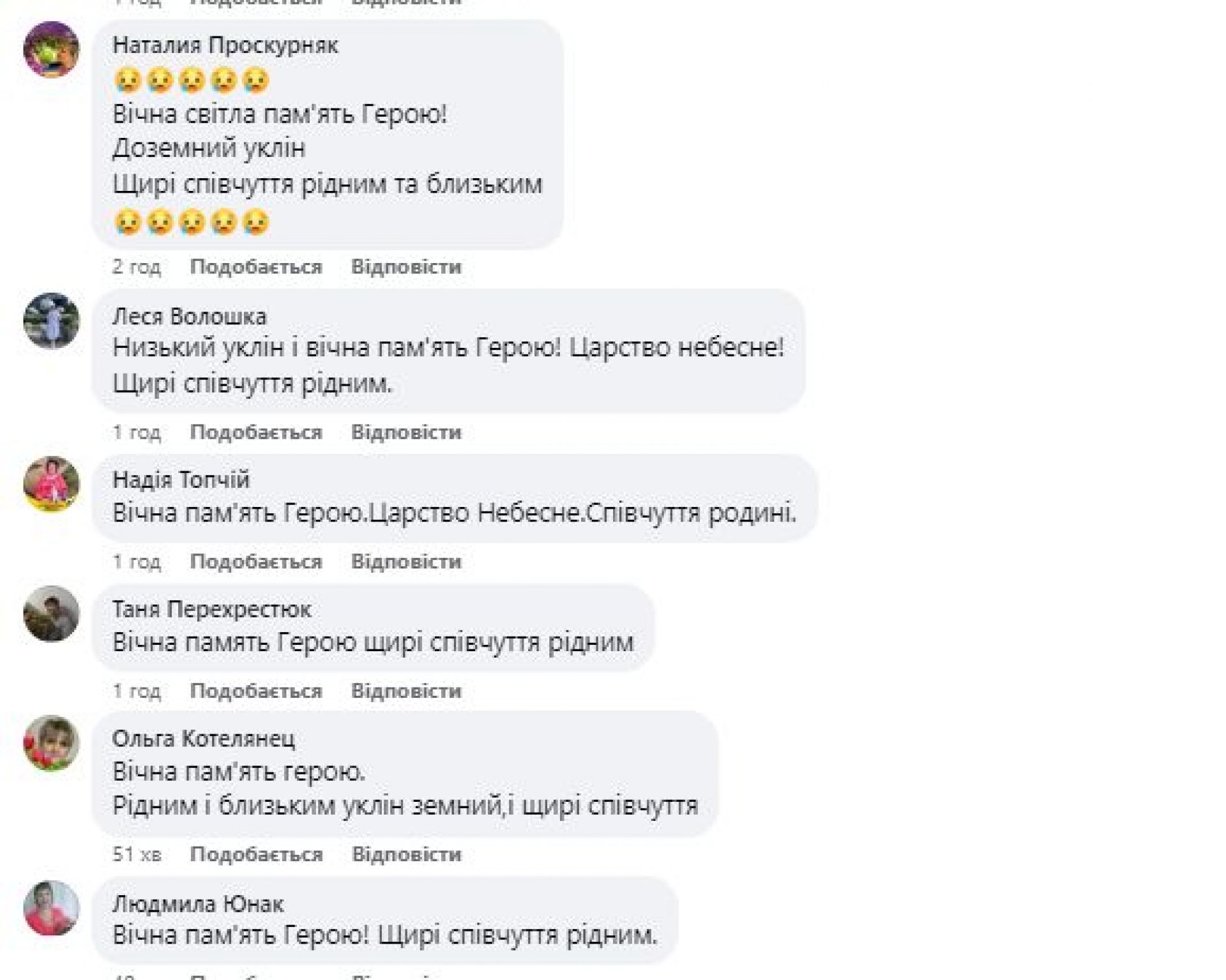 Валентина РочеваВічна пам'ять царство небесне Герою України, Щирі співчуття рідним -