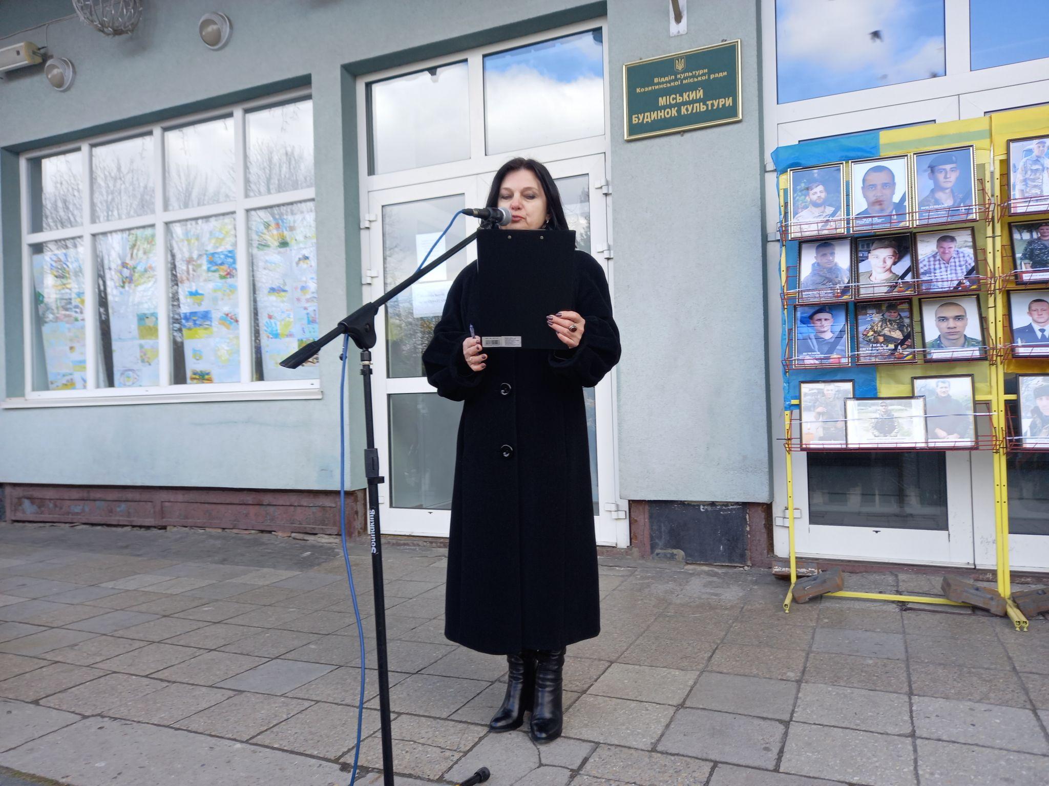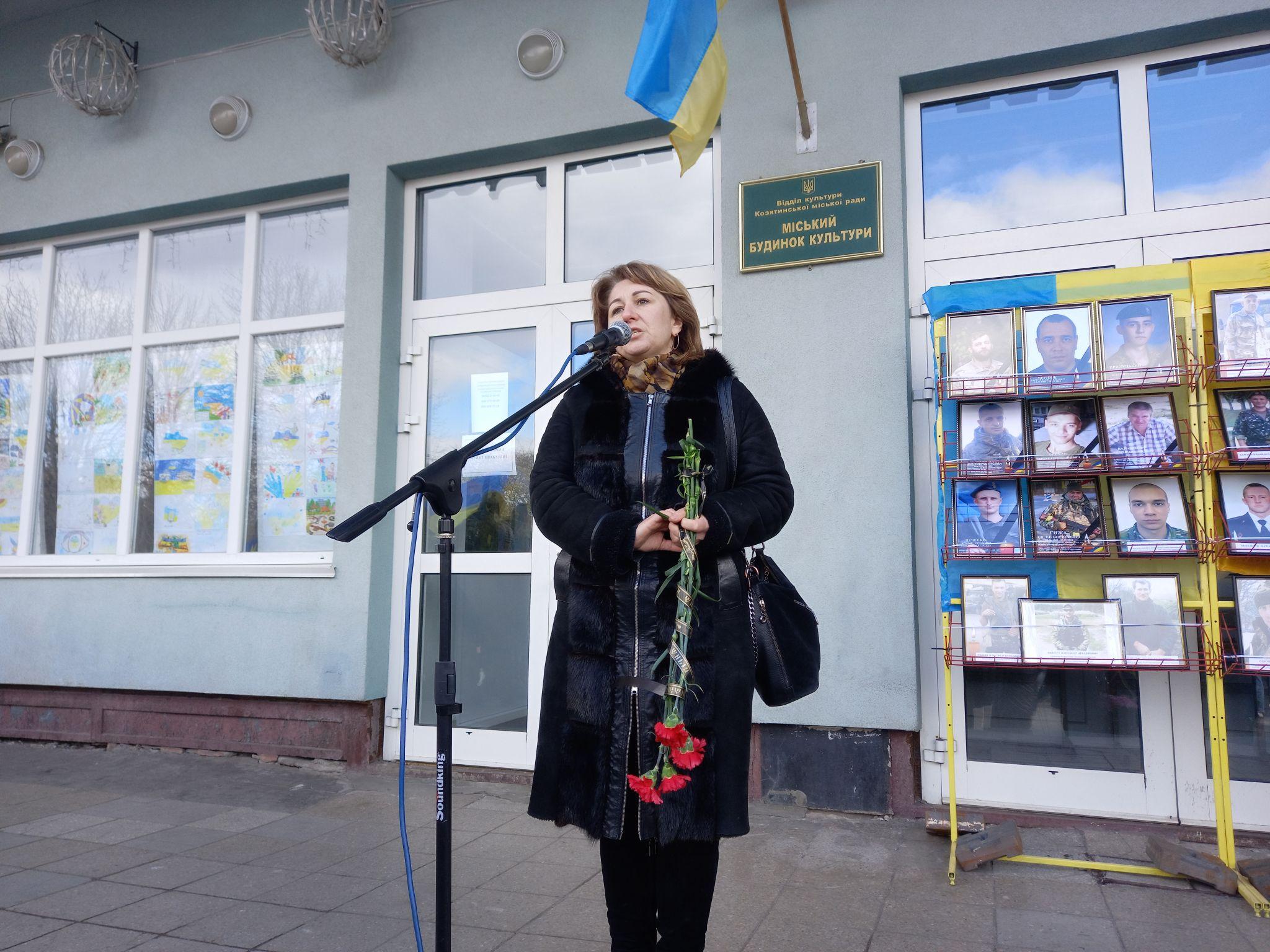— Ми переможемо, Україна переможе! Міцніше стиснемо зуби і будемо гнати ворога з української землі, — сказала Рибінська. — Герої не вмирають! Герої живуть в наших серцях. Герої не гинуть! Герої живуть в зірках.