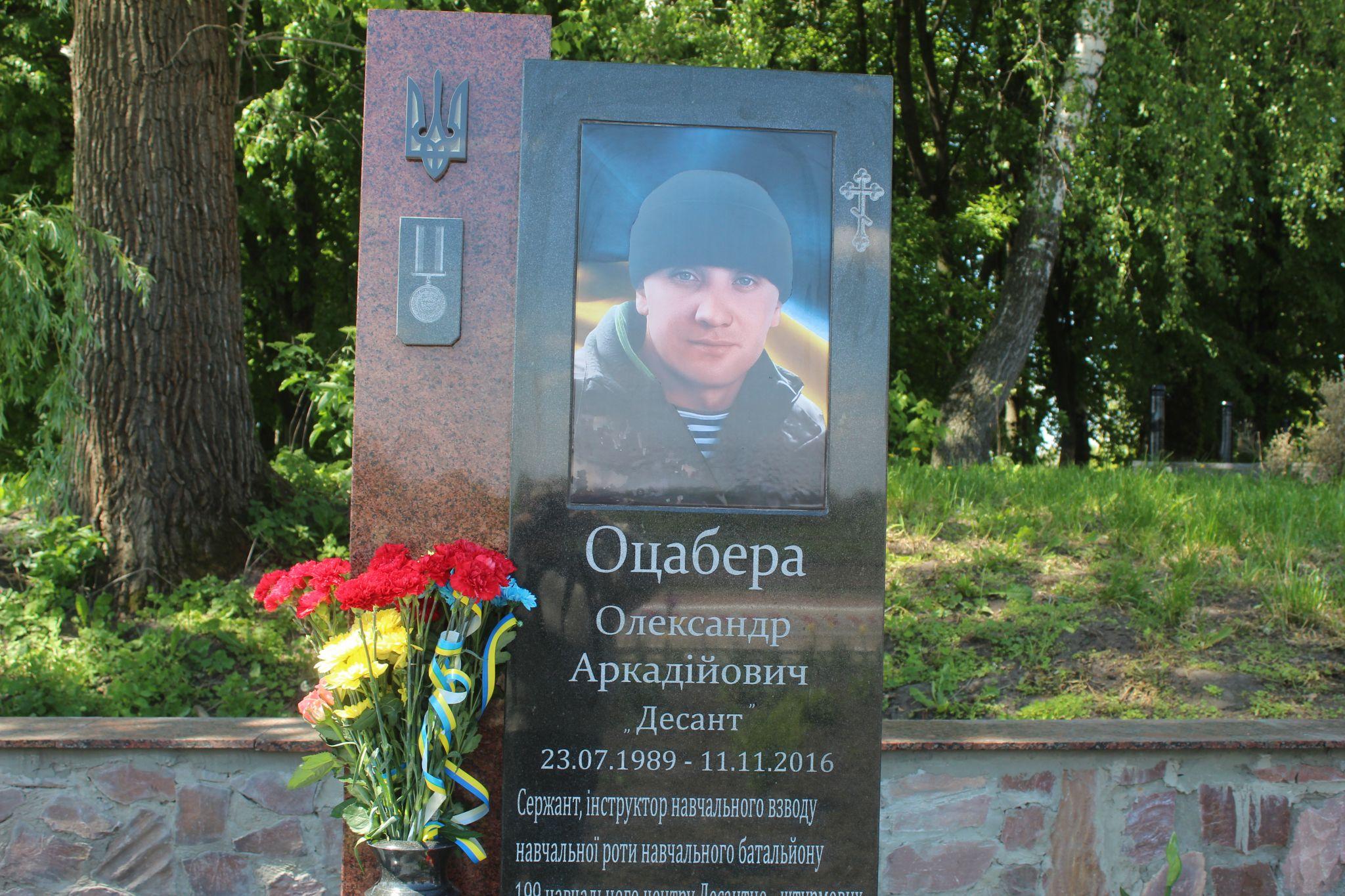 Олександр Оцабера — народився 23 липня 1989 року, позивний Десант, сержант, інструктор вогневої тактичної підготовки 199 навчального центру ВДВ при 95-й окремій десантно-штурмовій бригаді м. Житомир. Героїчно загинув 11 листопада 2016 року під містом Торецьк, донецької області. За заслуги перед Батьківщиною нагороджений медаллю «Захисник Вітчизни» та орденом «За мужність» ІІІ ступеня, посмертно.