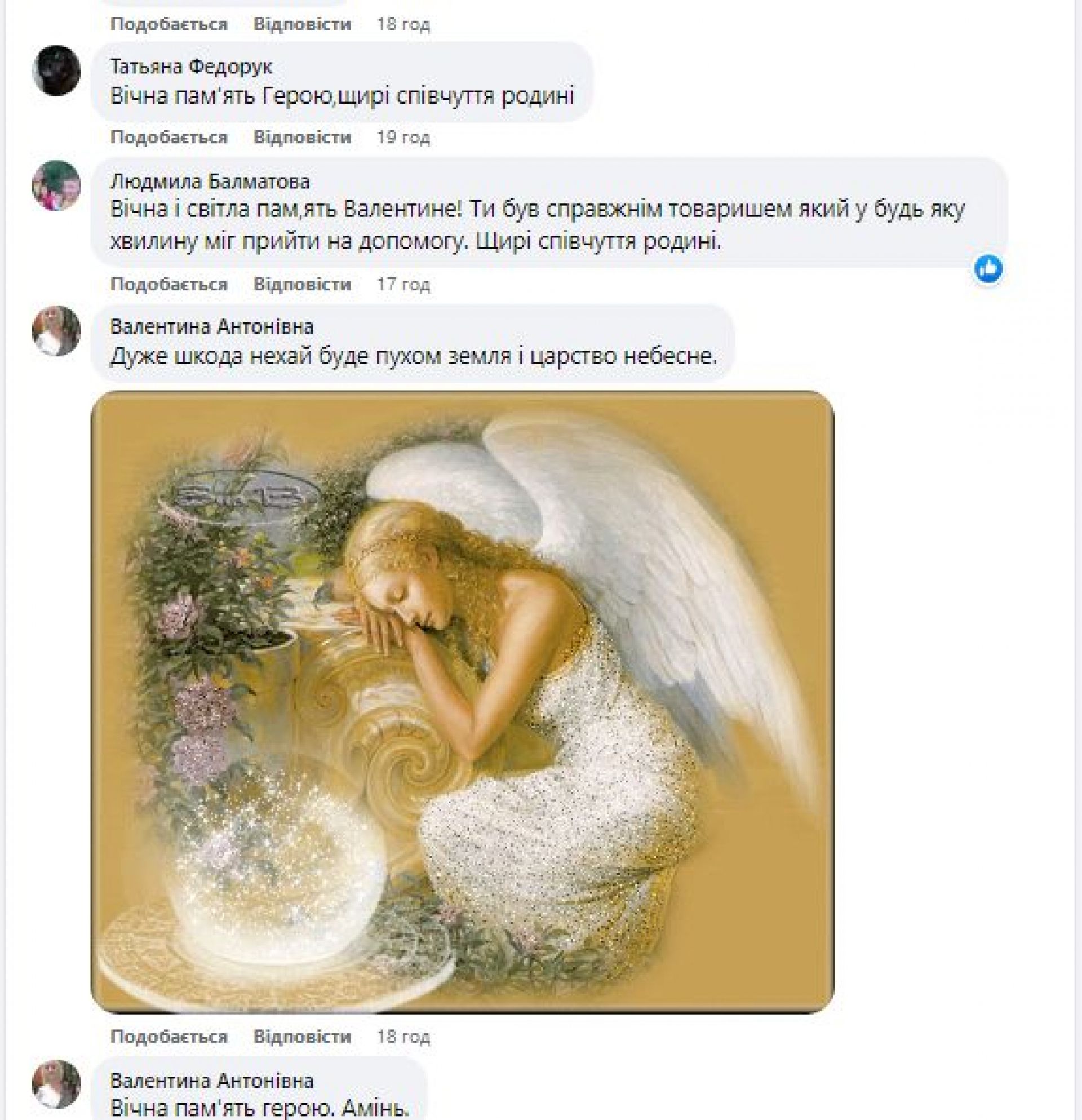 — В боях за Україну загинув Козятинчанин, мій сусід, друг — Валентин Яричевський, уродженець с. Флоріанівка, мешканець міста. Був людиною від Бога. Серце болить, — написав Геннадій Ткачук