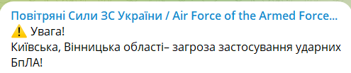 Повідомляли про загрозу застосування ударних БпЛА і Повітряні Сили ЗС України
