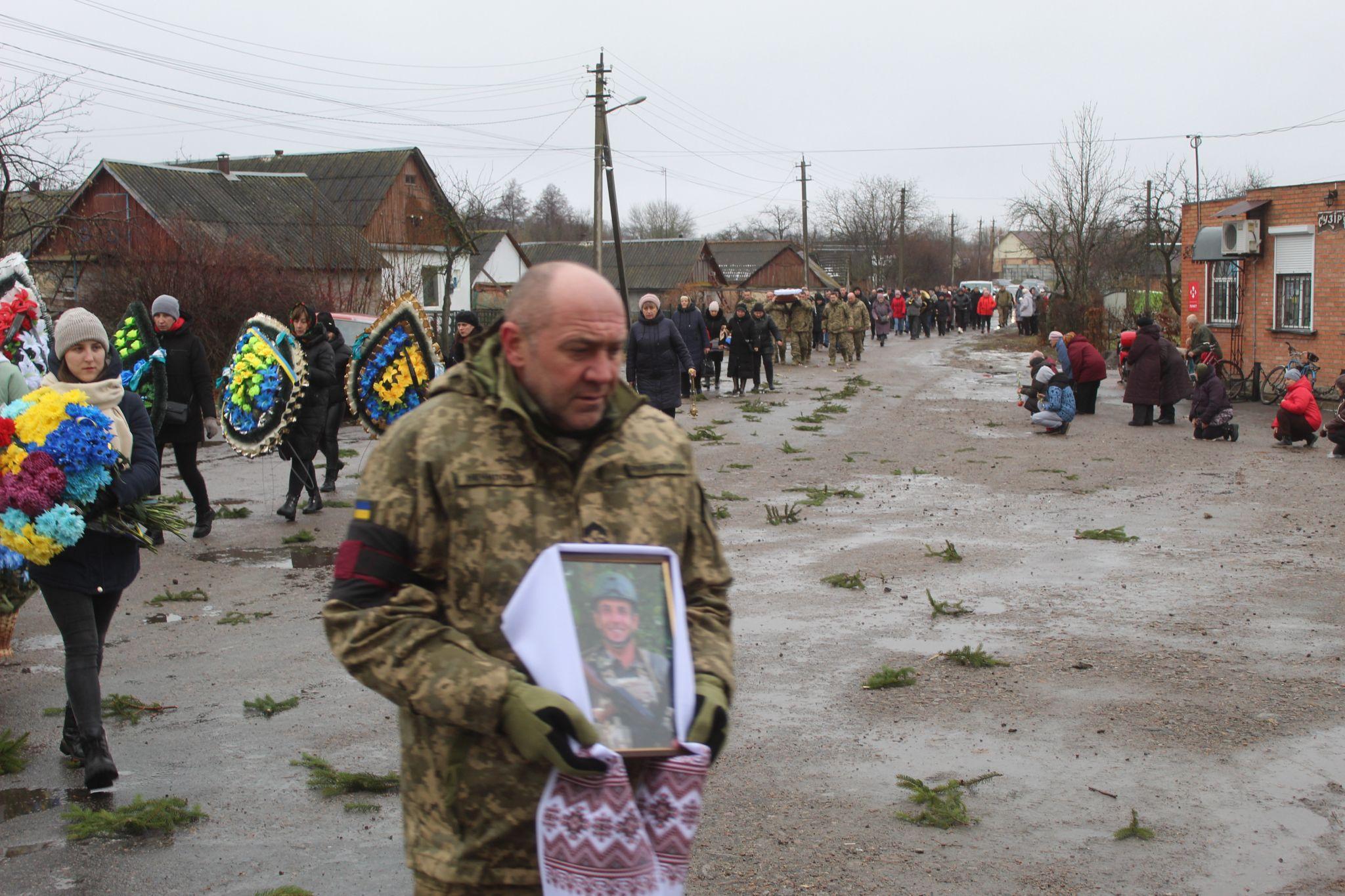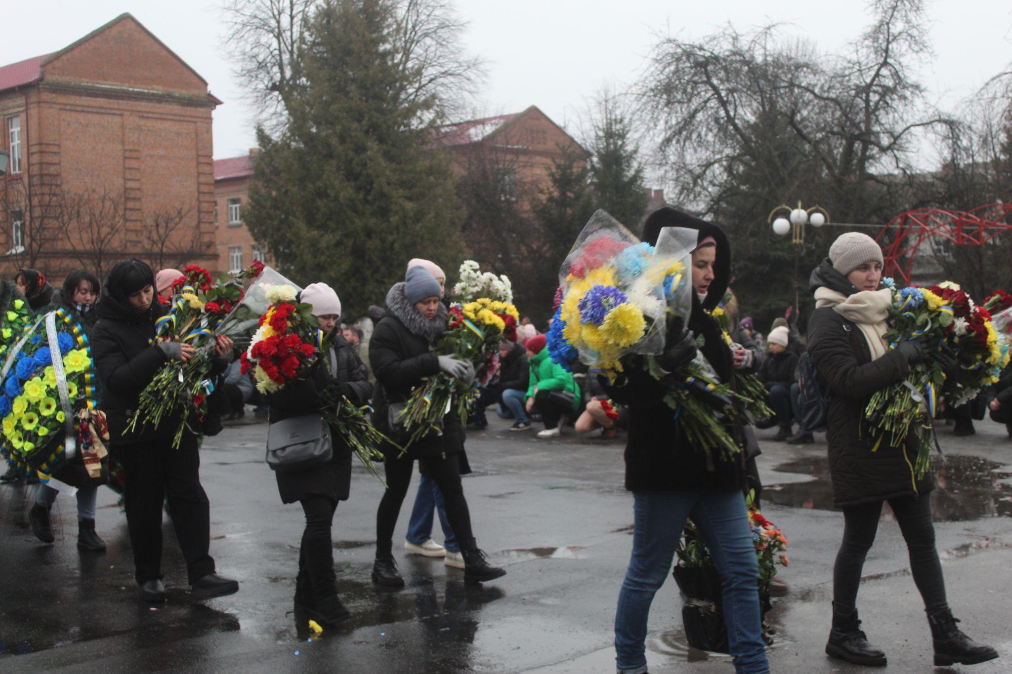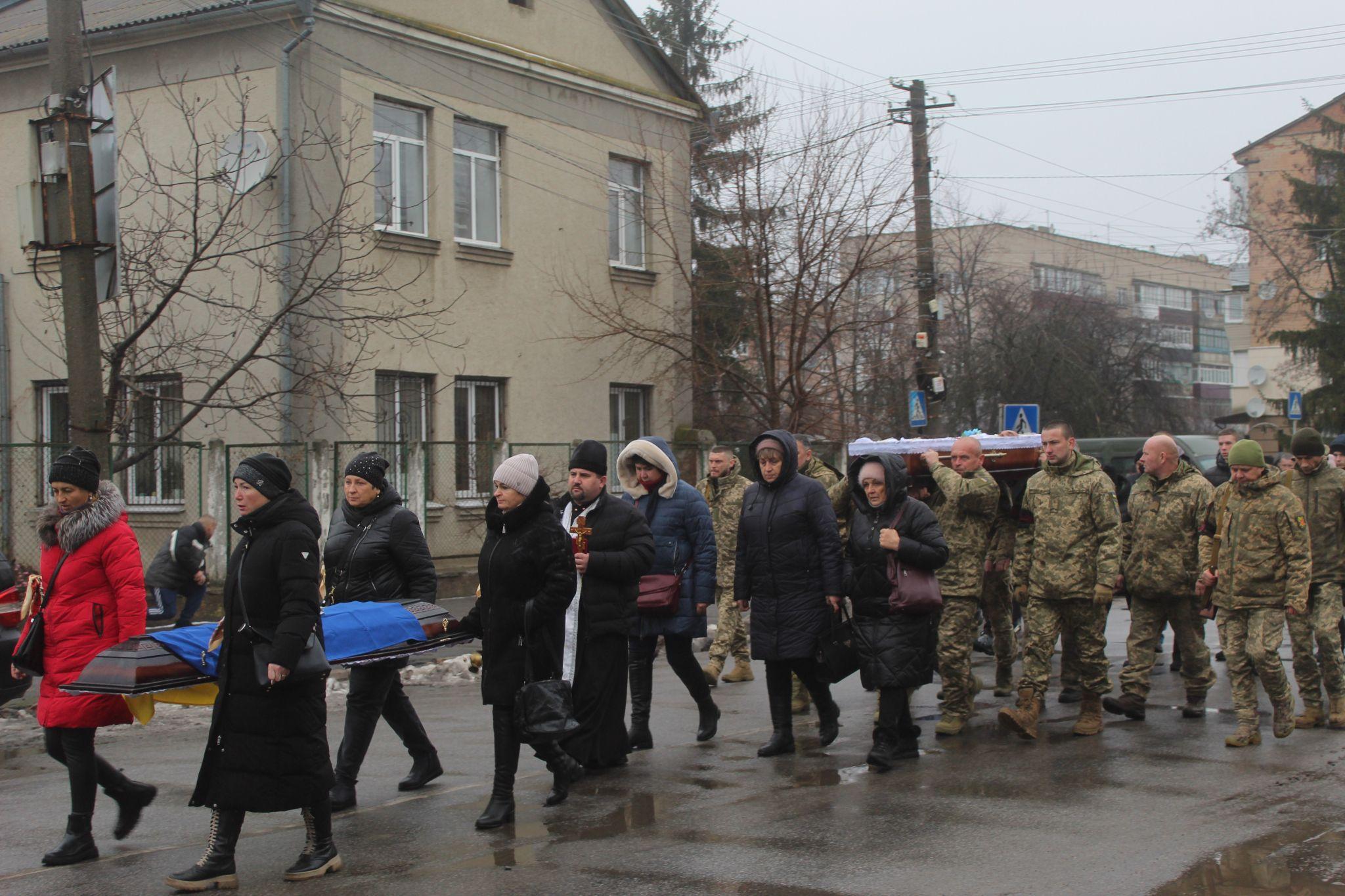 Тіло Героя занесли до церкви і чин похорон за воїном провів отець Василь. По завершенні молитви траурна колона в супроводі священника рушила на площу Героїв Майдану. Там з воїном мала прощатися громада.