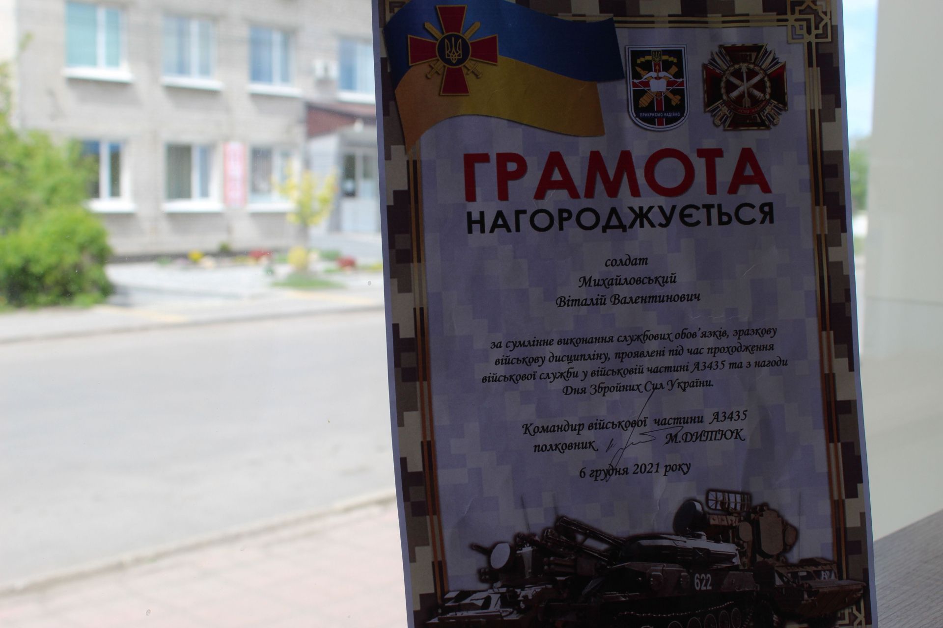 В папці документів, де й був лист до дочки Валерії, ми знайшли подяки та похвальні грамоти від командування протитанкового артилерійського дивізіону військової частини А 1619. Свідоцтво, що він ще раз навчався в нашому залізничному училищі і набув професію машиніста електровоза, та військовий квиток і маленьке фото Валерії, які носив під своїм серцем до останнього.