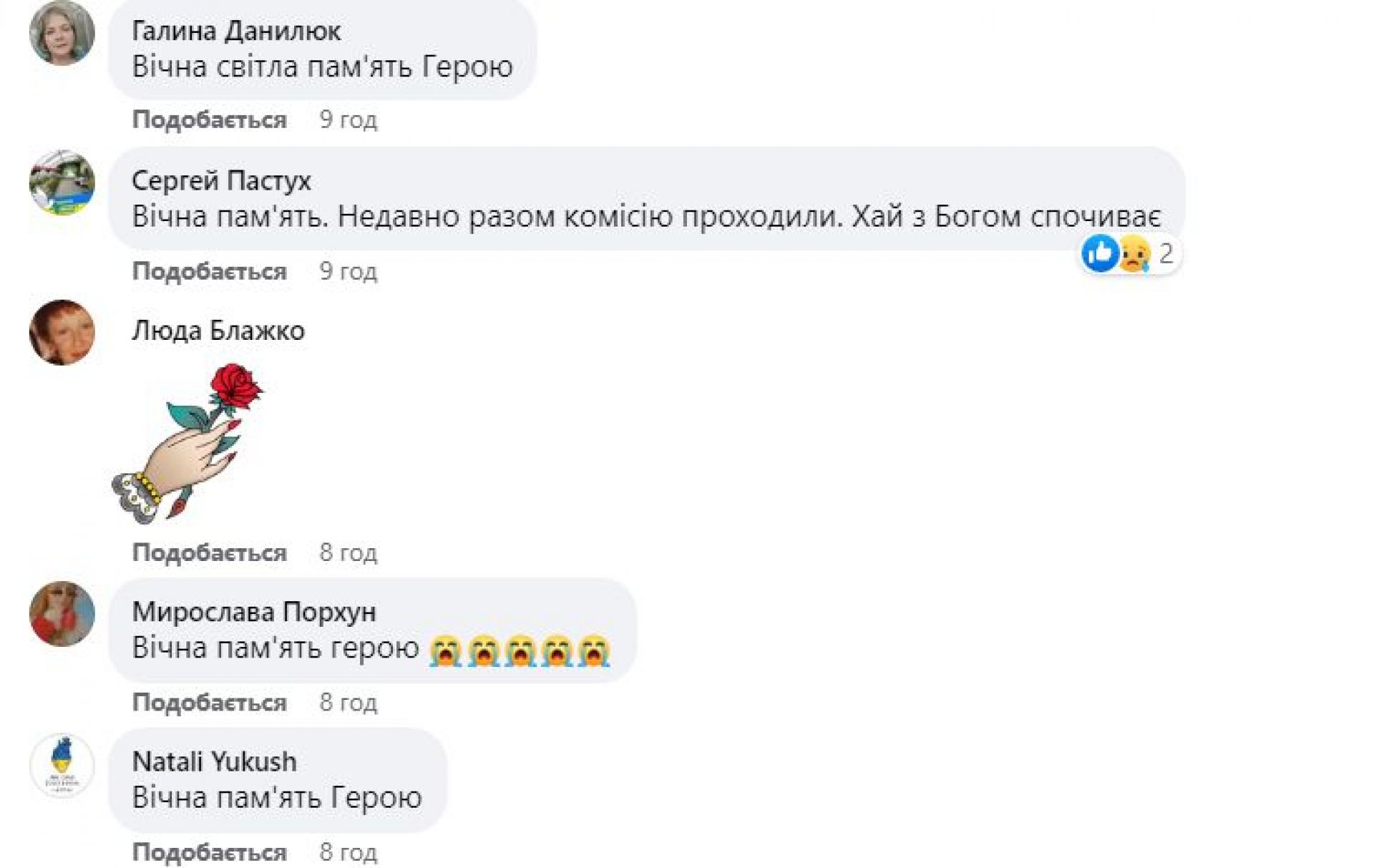 Герої не вмирають, вони назавжди залишаються в наших серцях. Вічна пам'ять Герою! Слава Україні!