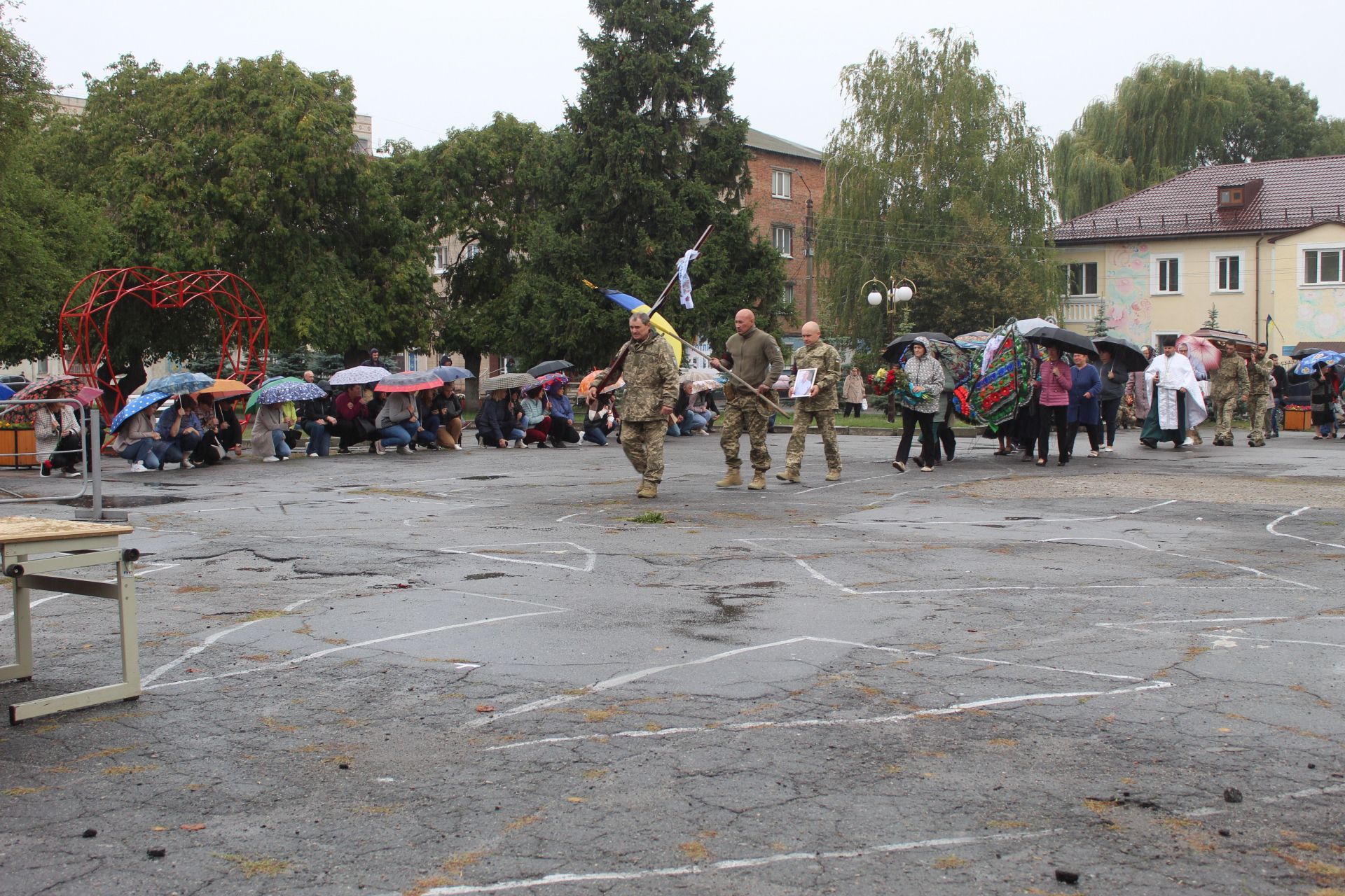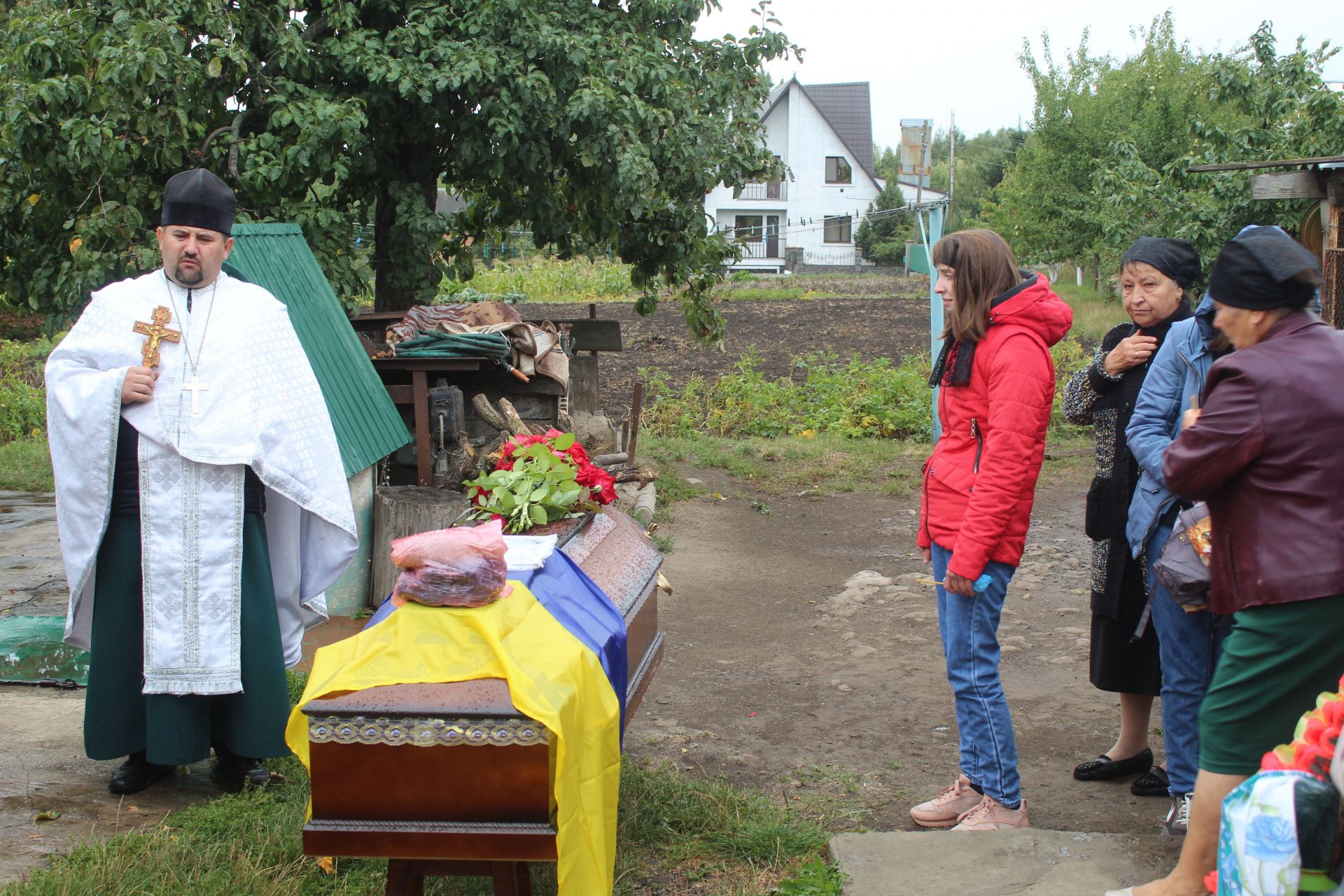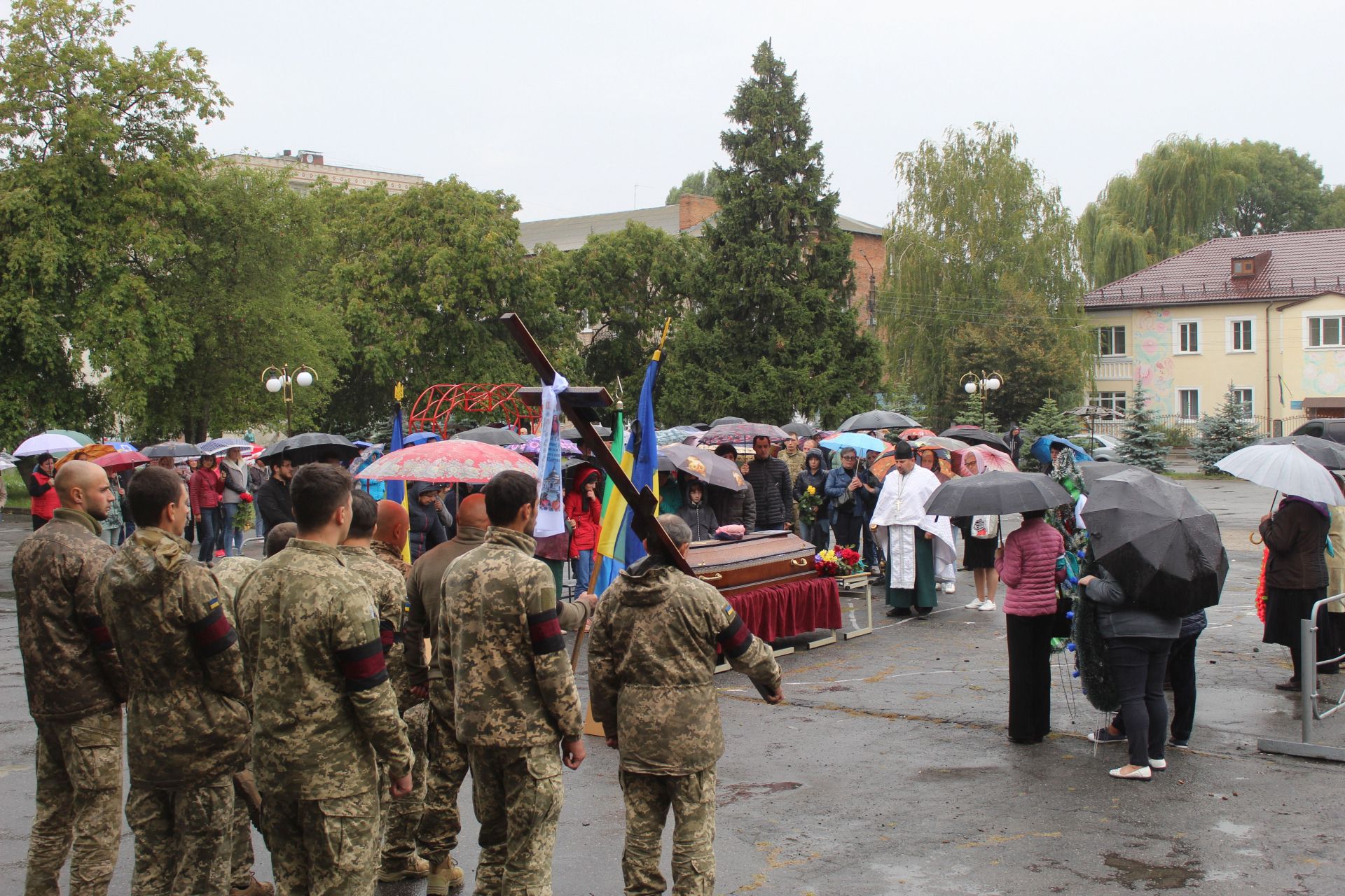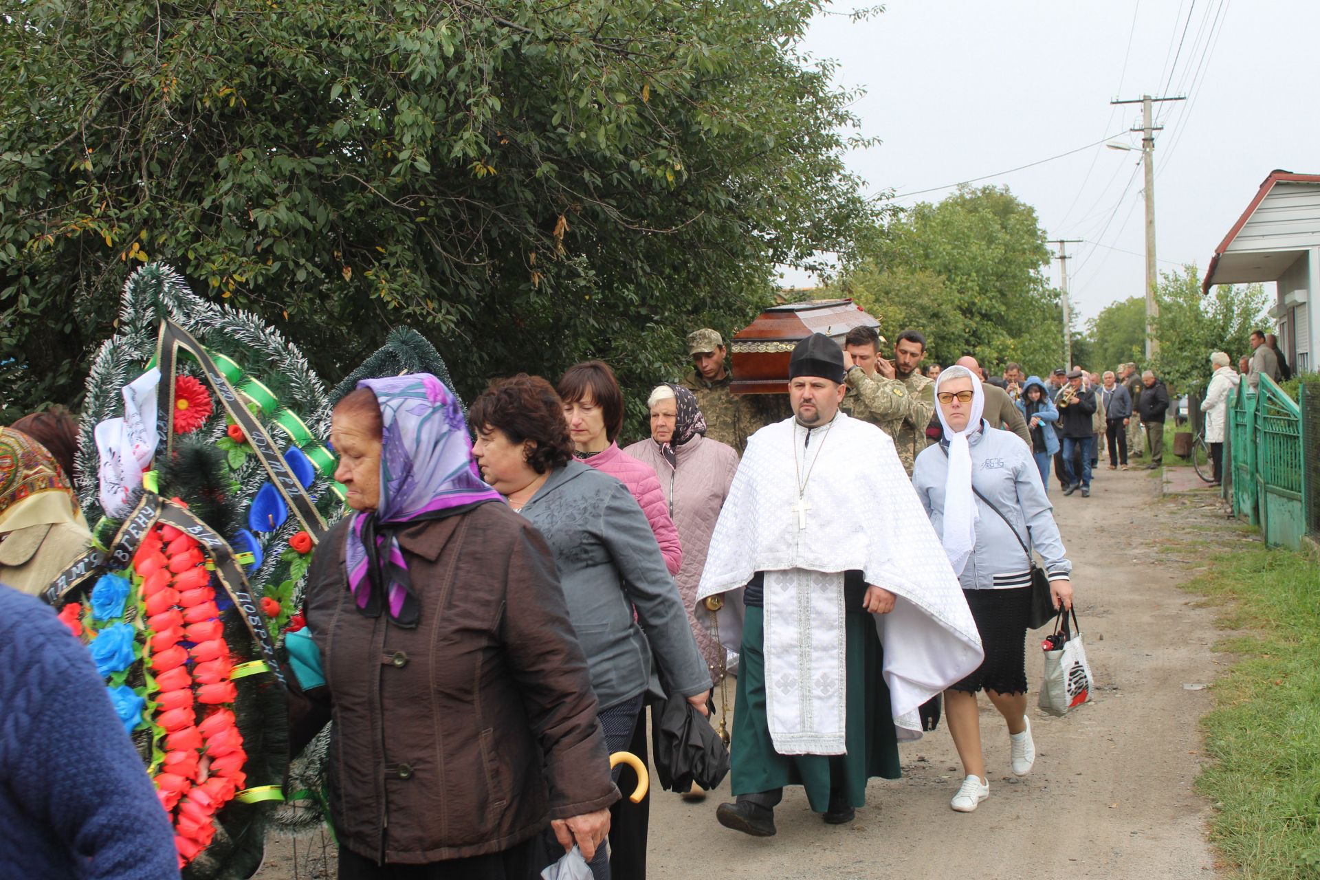 На подвір’ї родини Героя України було багатолюдно. Заупокійну молитву проводив протоієрей храму Покрови пресвятої Богородиці священик Православної церкви України отець Василь, а побратими Героя будували колону траурної процесії. Коли отець Василь завершив службу Божу, колона з портретом воїна вінками і квітами рушила на площу нашого міста.