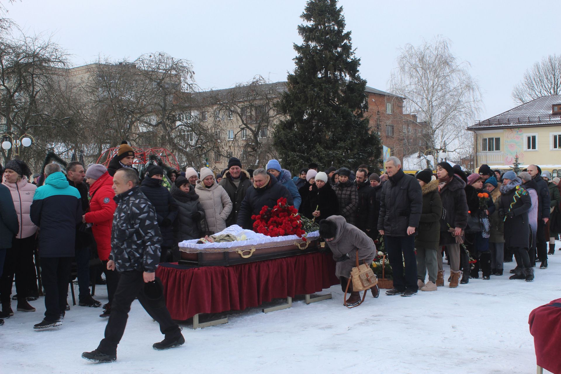 Потім ведуча траурного мітингу передала слово козятинському міському голові Тетяні Єрмолаєвій. Ще на мітингу мали слово класний керівник Сергія Алла Анатоліївна та священик Микола Волохатий. Після їхніх виступів громада почала прощатися з своїм захисником.
