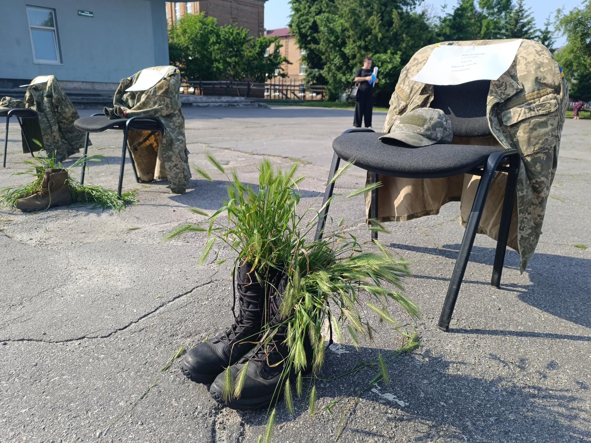 У центрі площі пусті стільці. На спинки накинуті військові куртки. А перед стільцями — черевики, що поросли травою. Ця експозиція символізує військових, що зникли безвісти. У неділю, 8 червня козятинці та мешканці колишнього Козятинського району прийшли на центральну площу, де відбувся мітинг-нагадування про зниклих безвісти та полонених.