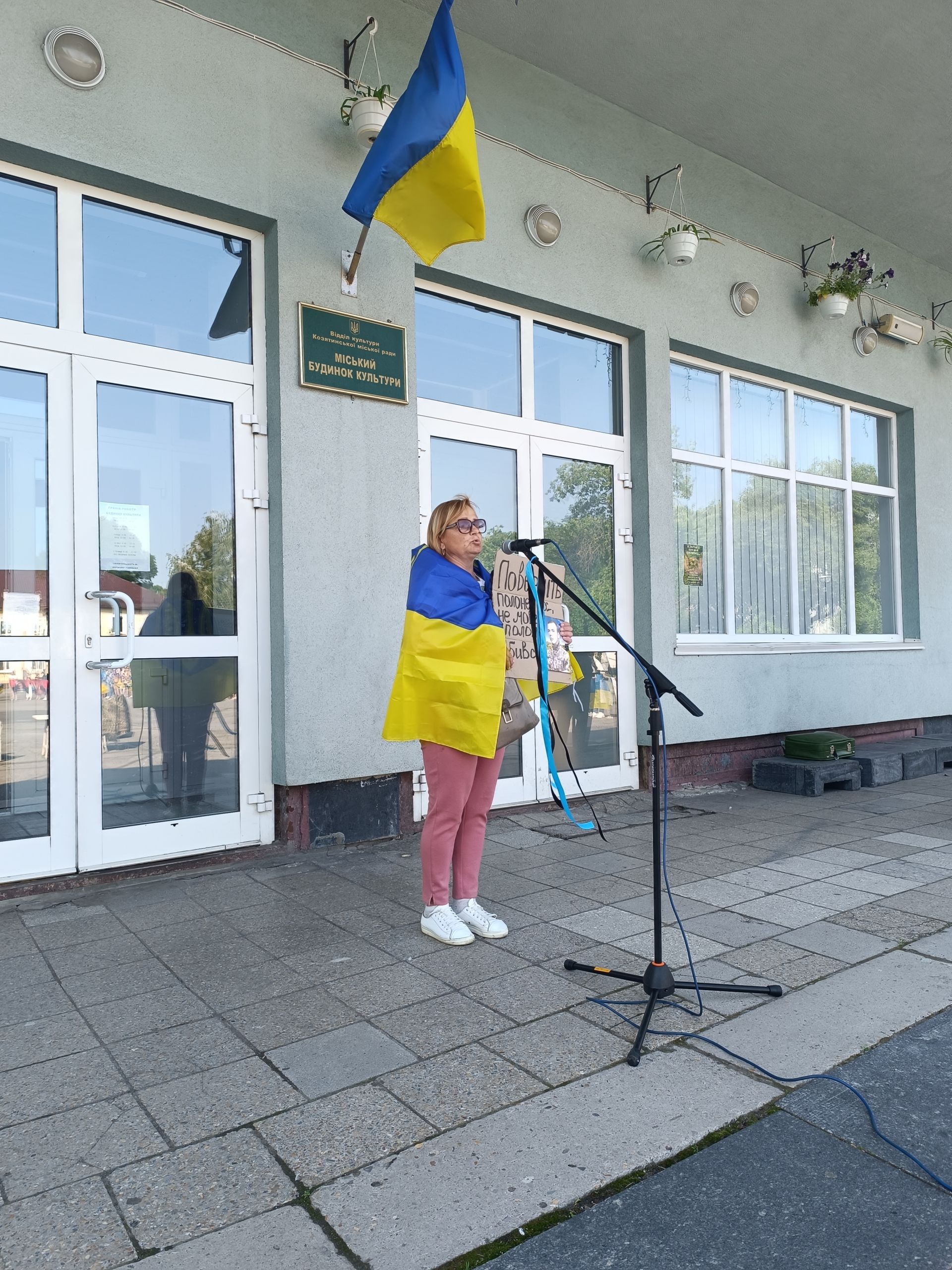 — Господь сказав Аврааму: «Назви мені п’ять праведників і я не буду палити Содом і Гоморру». Із міської ради хтось воює, чи син чийсь воює? Чи хтось зник безвісти? — звернулася Олена до представників міської ради, присутніх на мітингу.