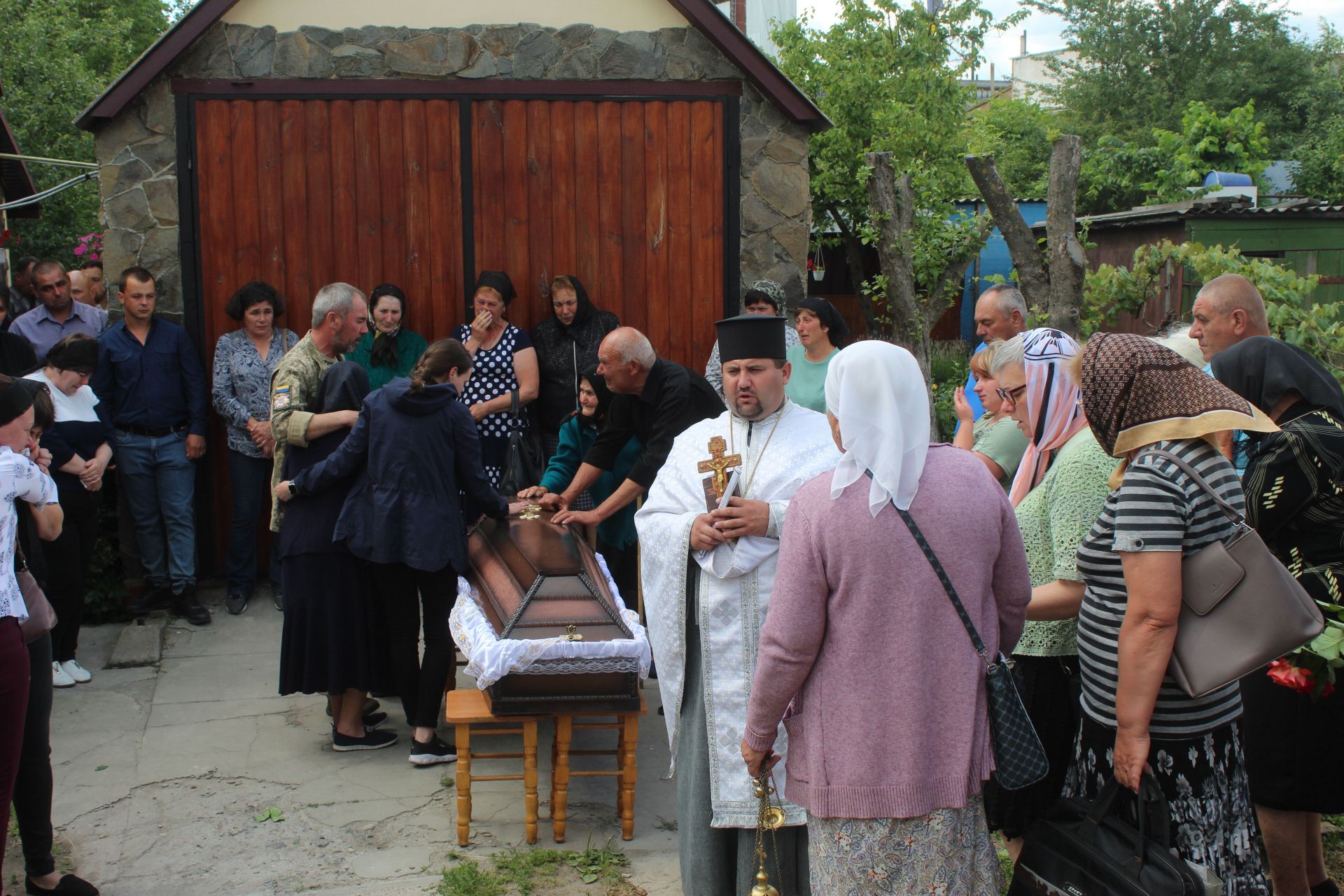 На провулок Лікарняний, куди побратими Олега доставили тіло героя, люди щоб провести свого земляка в останню дорогу, стали сходитись близько 10 години ранку. З кожною хвилиною людей на провулку Лікарняному більшало і майже кожен тримав у руках живі квіти. Заупокійну молитву за загиблим воїном проводив настоятель храму Покрови пресвятої Богородиці протоієрей Василь Влізло. Коли служба Божа була завершена, траурна процесія вирушила на площу.