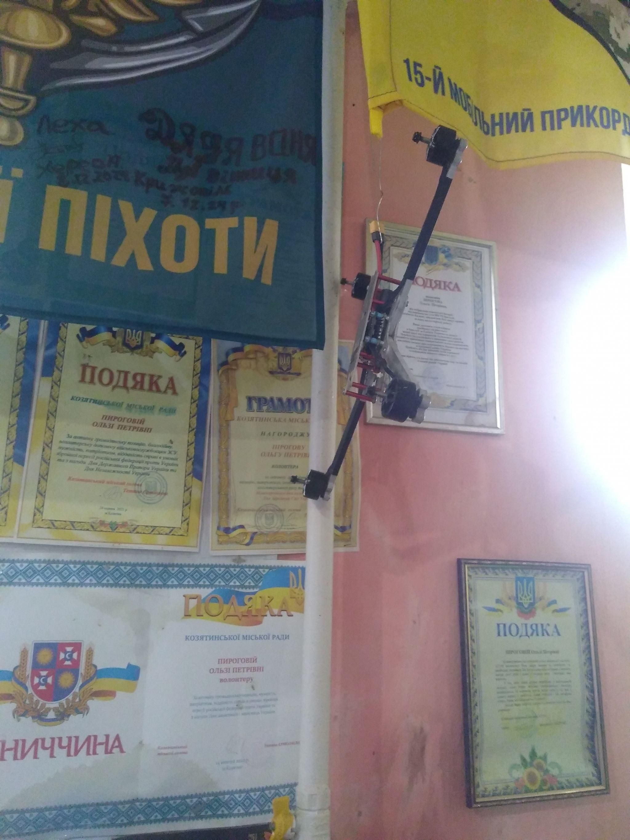 Серед подарунків від воїнів ще й підарський дрон. Він вже не робить скиди на наших хлопців, а гойдається на мотузці. Того ординського безпілотника і ми погойдали. Після того, як наші воїни приземлили його, цей паразит вже не кусається. Щодо гільз, ми й уявити не могли, що сувенір з нашим Тризубом, це стріляна гільза після обробки воїном-ювеліром. Виявляється, що в окопах на фронті люди різних мирних професій і серед них є ювеліри.