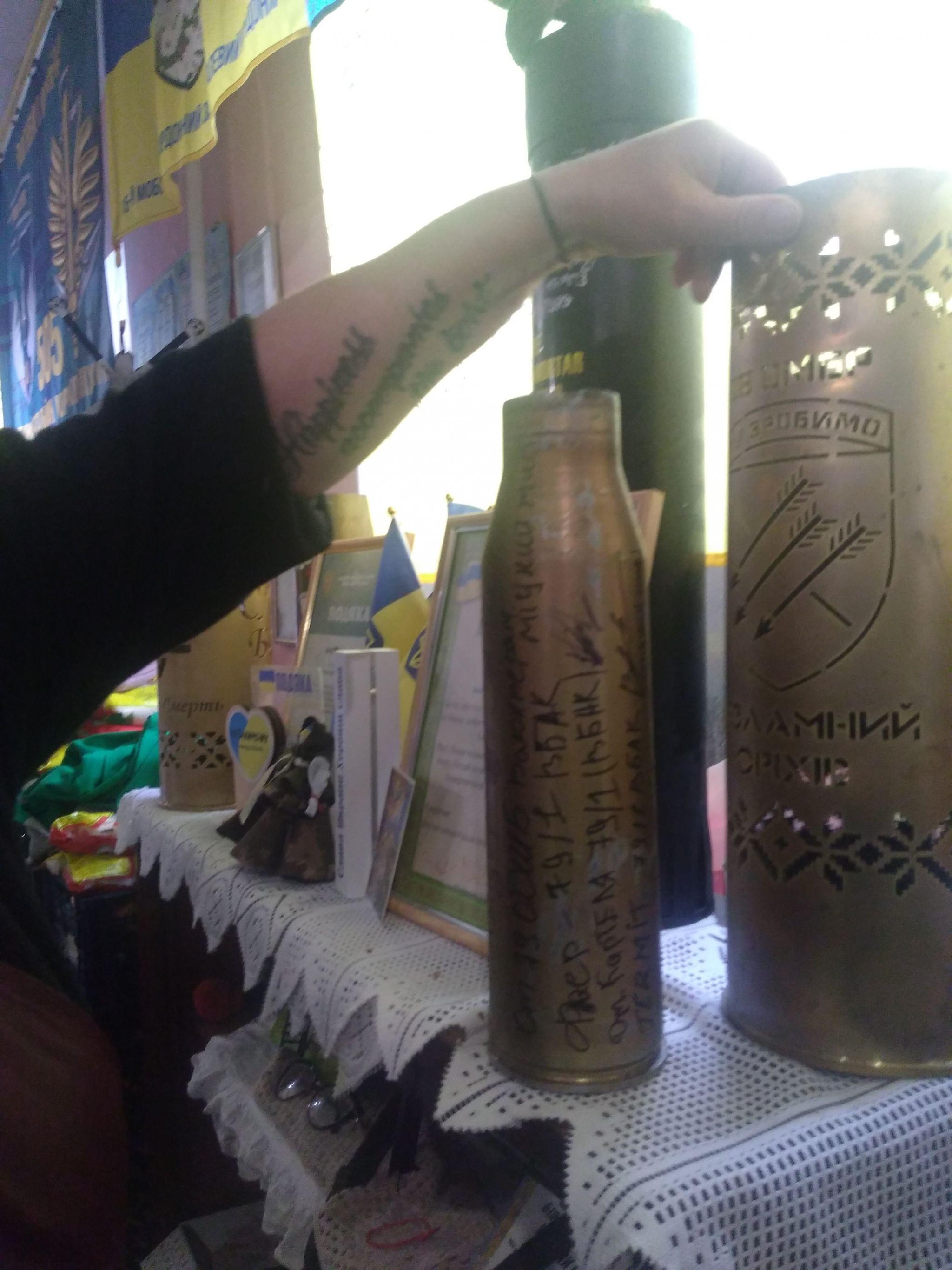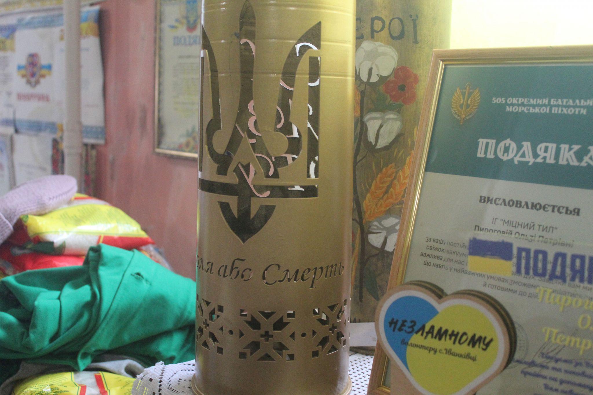— Це для нас найбільша нагорода, — каже волонтерка і додає: — те, що ми робимо, високо оценено нашими захисниками. Крім прапорів, подивіться, скільки стріляних гільз з ювелірною обробкою нам наші захисники подарували, — з гордістю розповідає благодійниця.