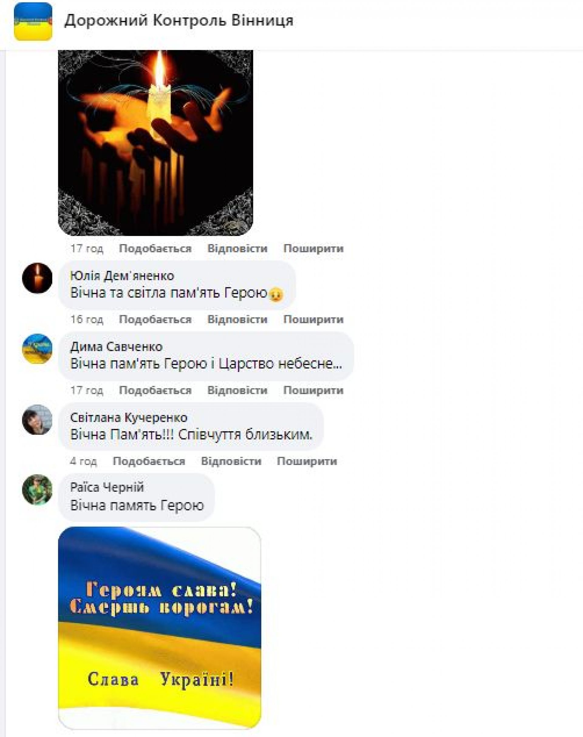 — Щирі співчуття родині та близьким та вічна памʼять Герою! Додаткова інформація буде повідомлена згодом, — йдеться у дописі.