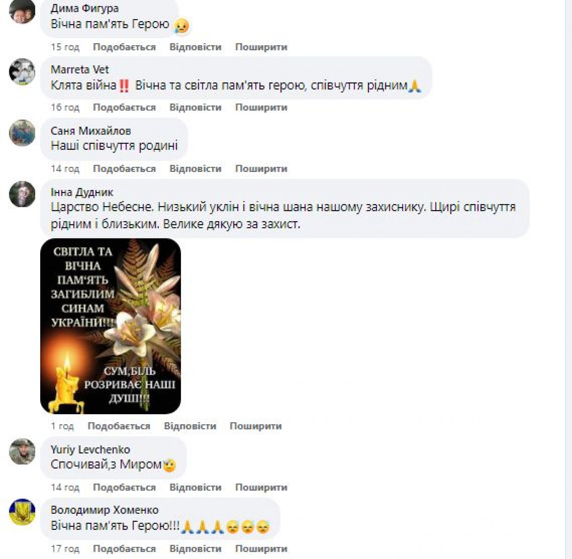 Друзі, рідні та колеги Артема висловлюють співчуття та публікують дописи, у яких згадують світлу пам'ять про мужнього захисника.