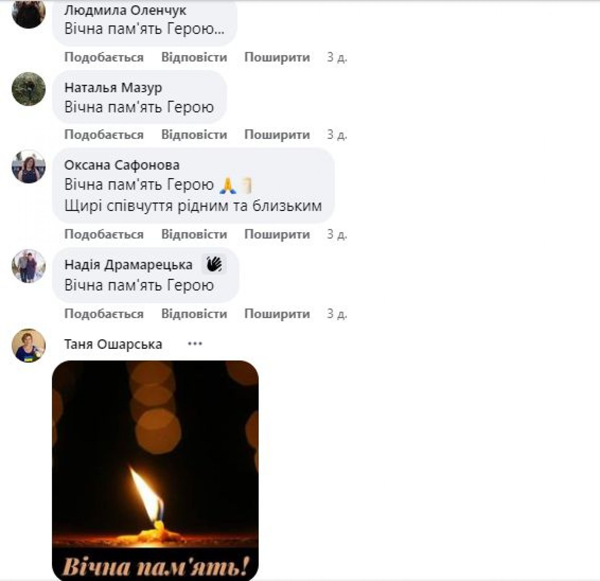 — Чимало хлопців тяг на собі і заставляв прагнути жити та боротись за життя. Сам говорив що нічого більше не цінує крім свого життя та родини. Сам так жив і інших навчав при будь-яких обставинах залишатись людиною. Ніколи не шукав легких шляхів і впевнено йшов вперед. Україна втратила Героя, Вітчизна — захисника, батьки — сина, дружина — люблячого та вірного чоловіка, донька — батька, колеги та друзі — надійного побратима, фірма — толкового та виконавчого співробітника. Батькам низький уклін за виховання справжнього Чоловіка та Героя. Такі як він, повинні жити ... в наших серцях, в нашій світлій пам'яті ... І цінувати своє, адже за нашу свободу і життя такі як Андрій, віддають своє. Прохання до односельців, бути готовими гідно зустріти нашого земляка живим коридором! Час та місце буде повідомлятись, — йдеться у повідомленні