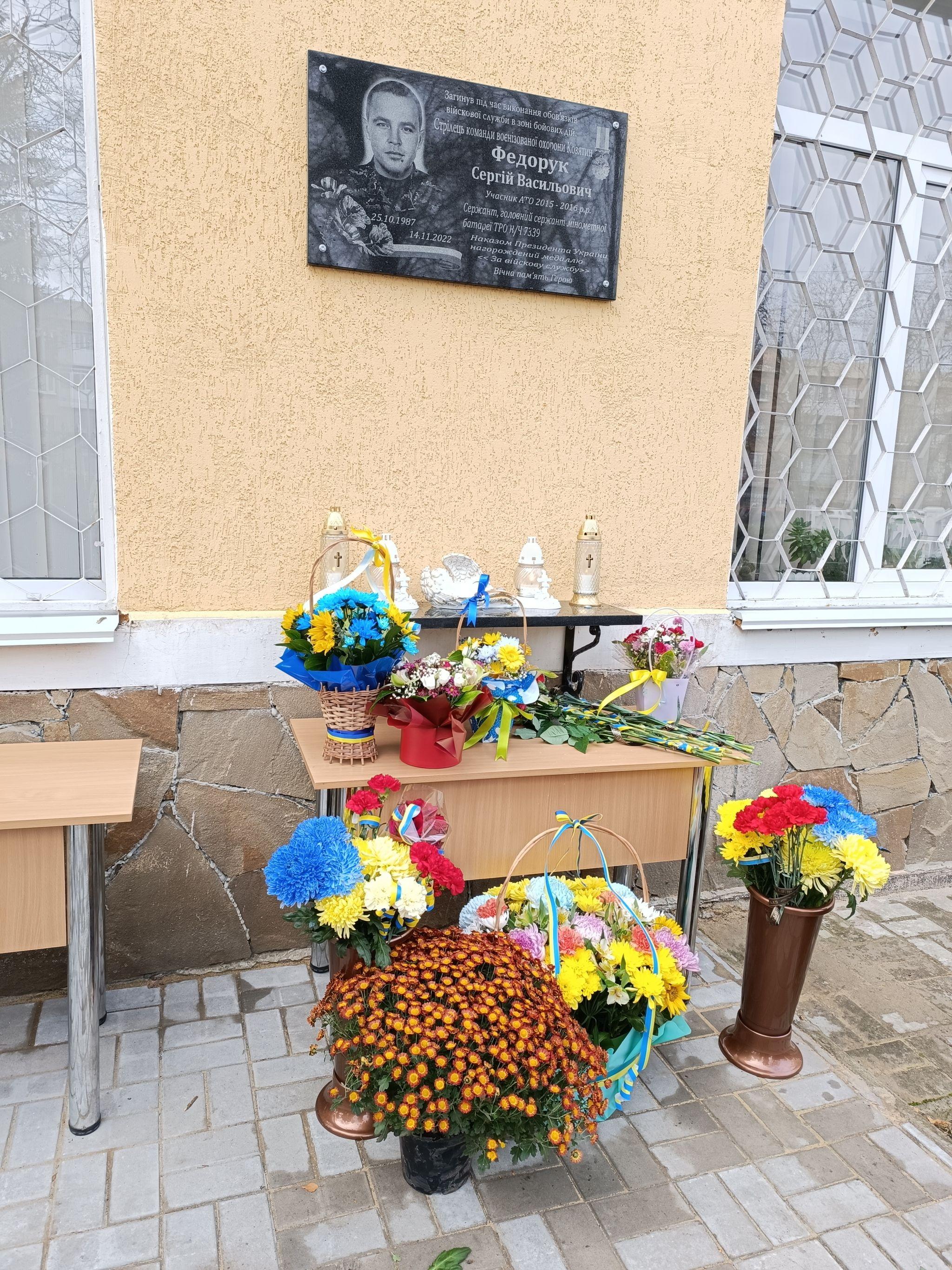 «Такої людини більше не буде»: в пам'ять про Героя Сергія Федорука відкрили меморіальну дошку
