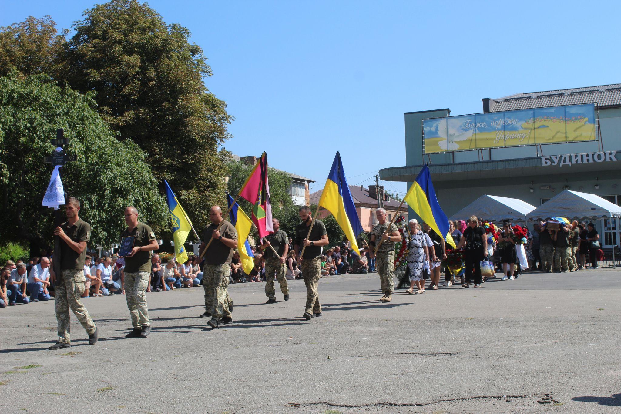 Зустріла громада свого захисника живим коридором з розгорнутими прапорами від ЦРЛ до повороту вулиці Січових Стрільців.