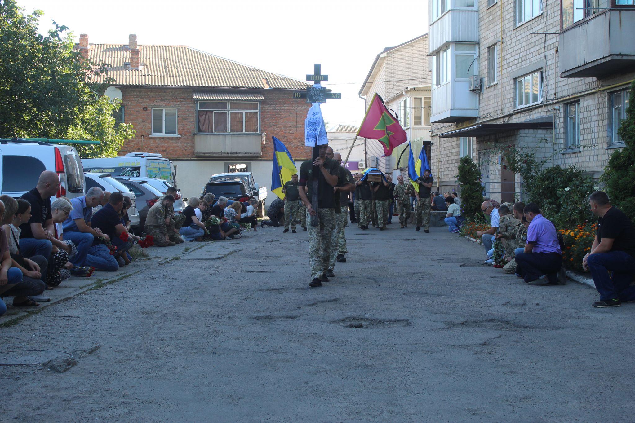 Біля під’їзду, де пройшло дитинство Героя, утворилися два кола. Біля першого схилили свої голови рідні і близькі Дениса. В другому великому колі стояли друзі і близькі великого воїна з квітами і ні жінки, ні чоловіки не змогли стримати сліз.