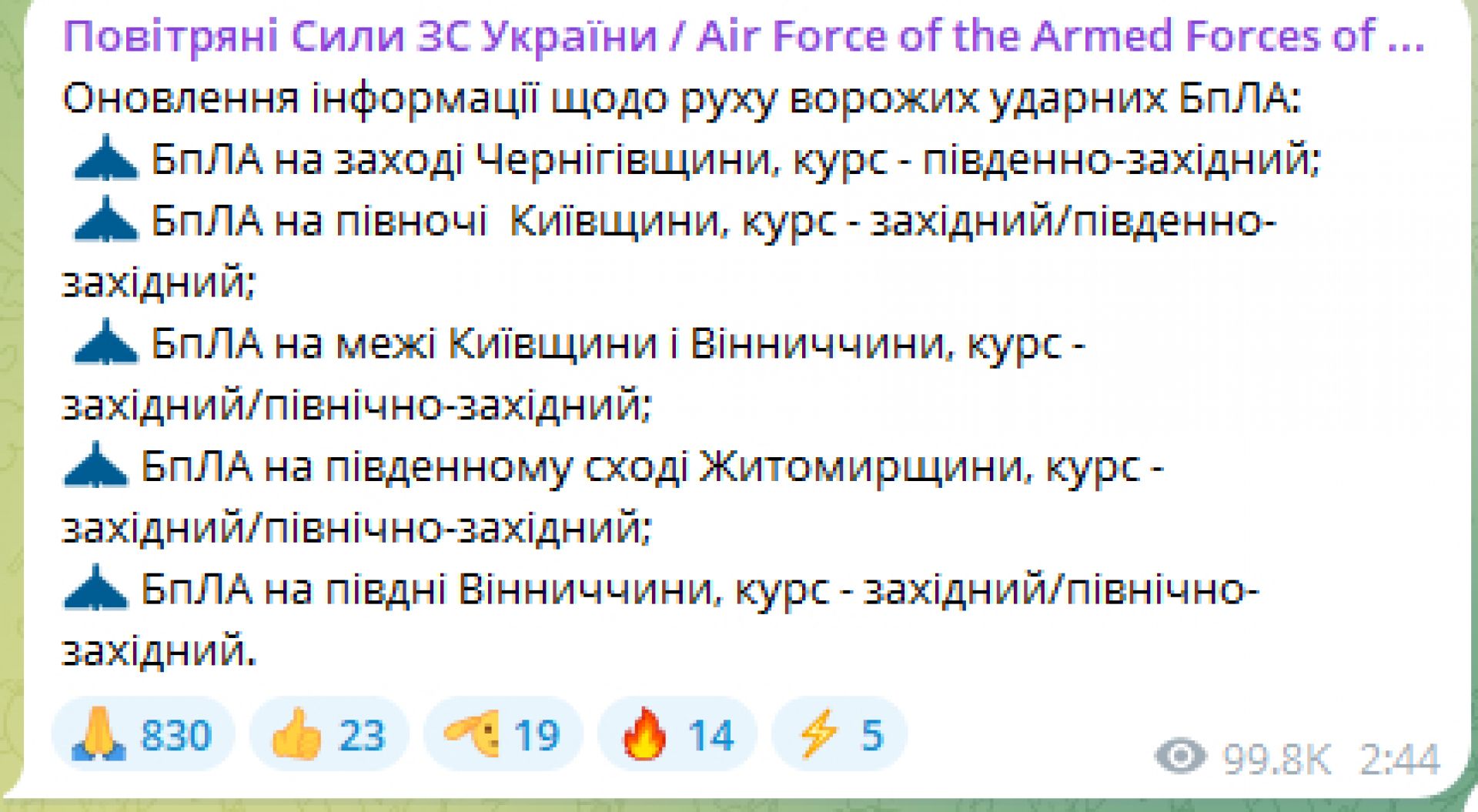 - Під загрозою застосування дронів була і Вінниччина. Тривога у нашій області тривала з 0:56 до 4:13.
