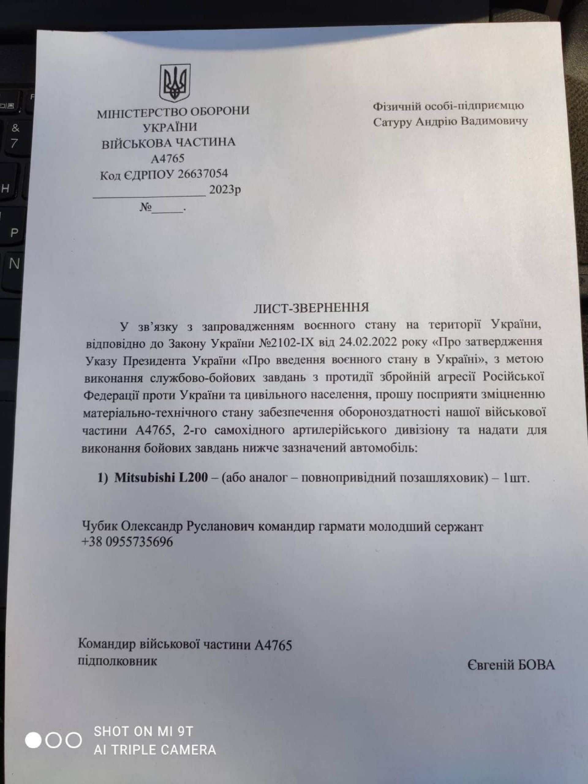 - В 3 батарею 2 дивізіону в/ч4765 потрібен автомобіль