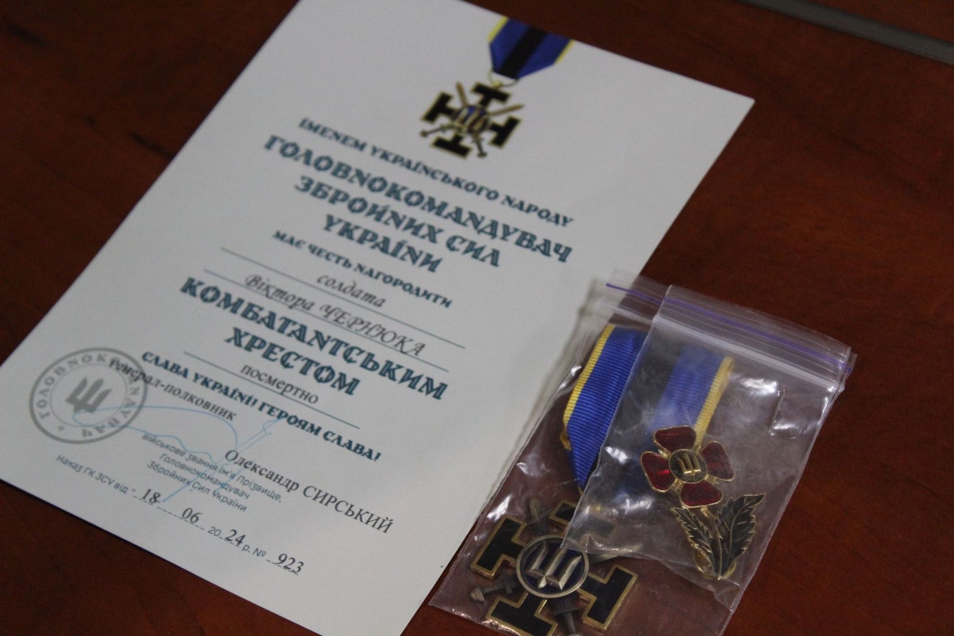 Почесним нагрудним знаком Головнокомандувача ЗСУ «Комбатантський хрест» (посмертно) та нагрудним знаком «Честь та пам'ять» нагородили солдата Віктора Чернюка. Нагороду отримали дружина та донька Героя.