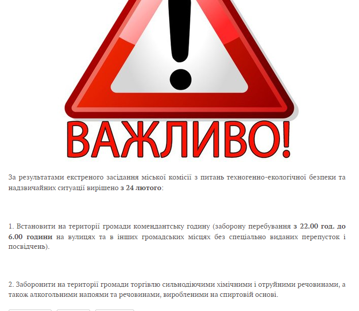 - За результатами екстерного засідання міської комісії з питань надзвичайних ситуацій вирішили з 24 лютого встановити ряд заборон