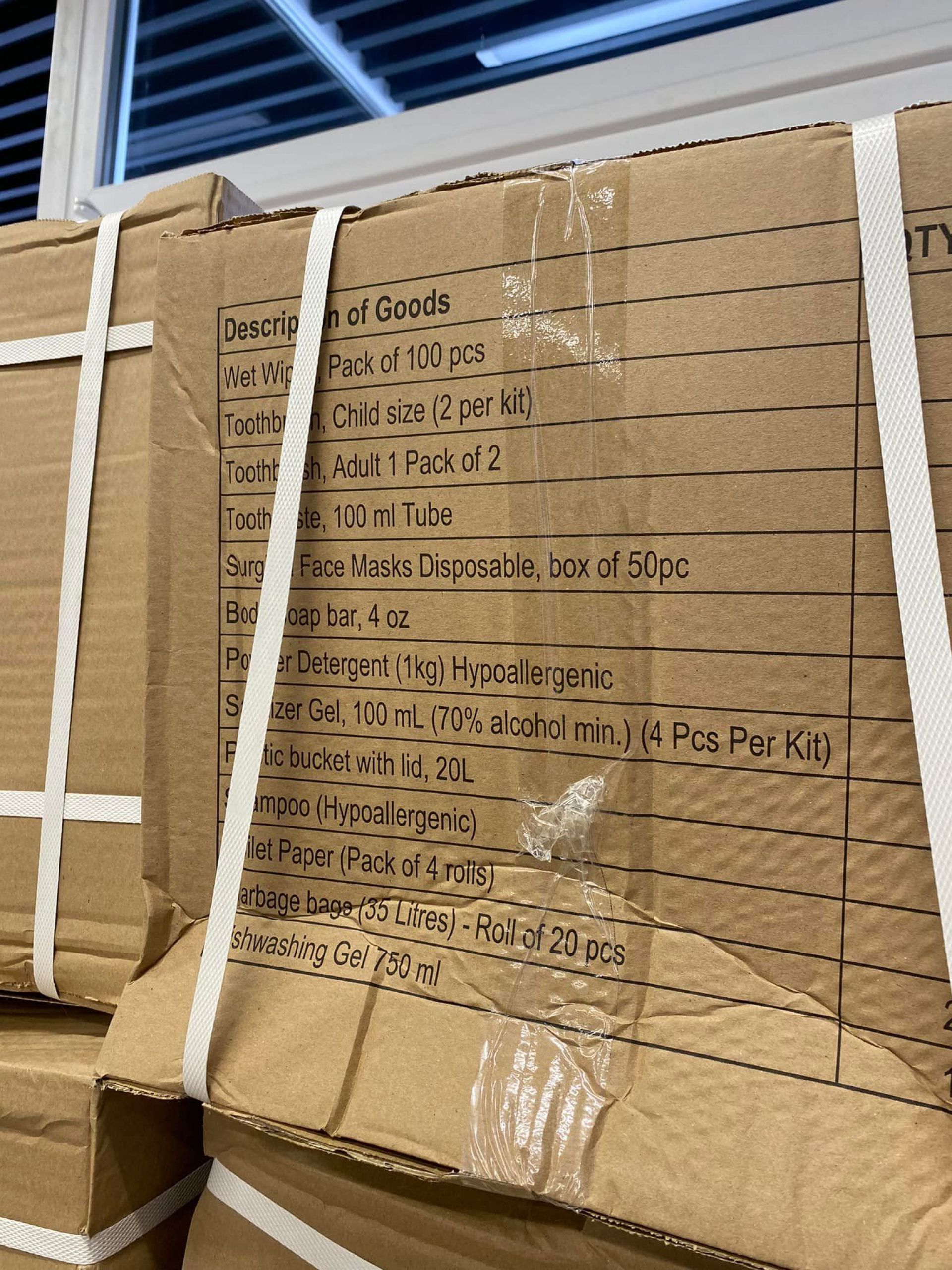 Всього надійшло 800 наборів - у них вологі серветки, зубні щітки та паста, шампунь, антисептики та інше. Кожен набір розрахований на одну сім'ю.