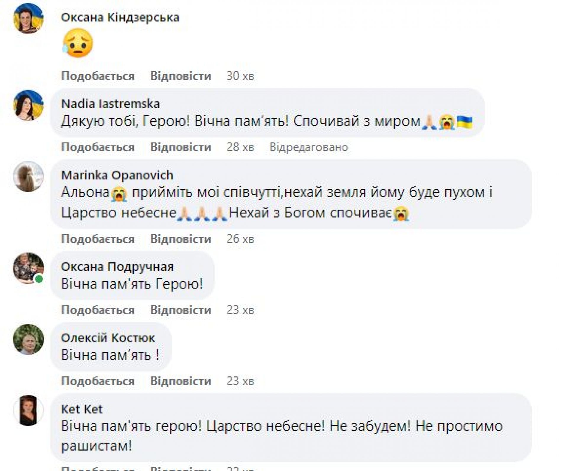 Про прощанням з козятинським Героєм, який віддав своє життя за Україну, у соціальних мережах повідомила мама загиблого Артура Альона Венжик
