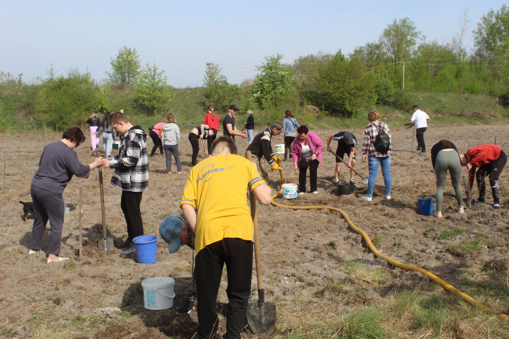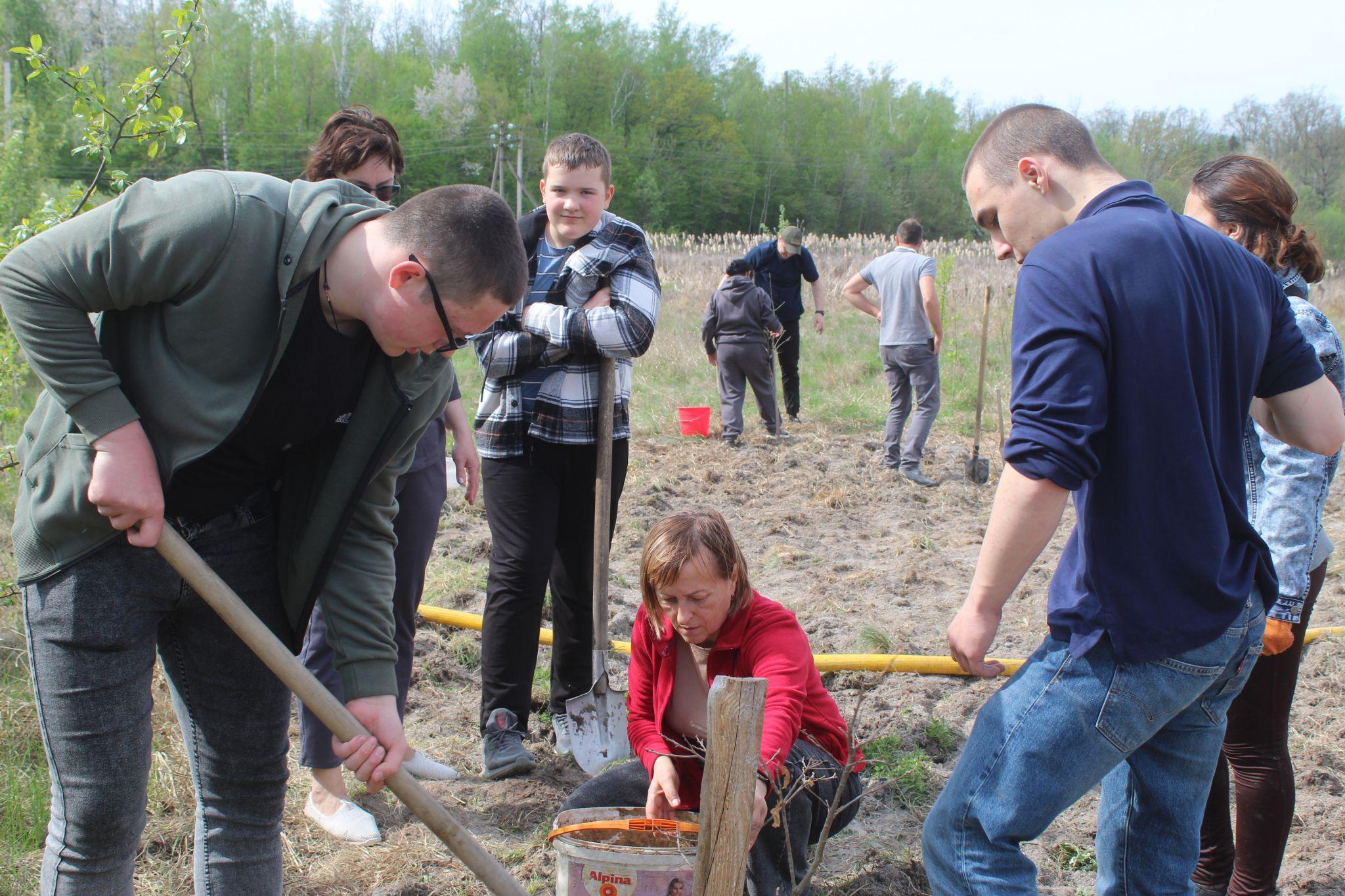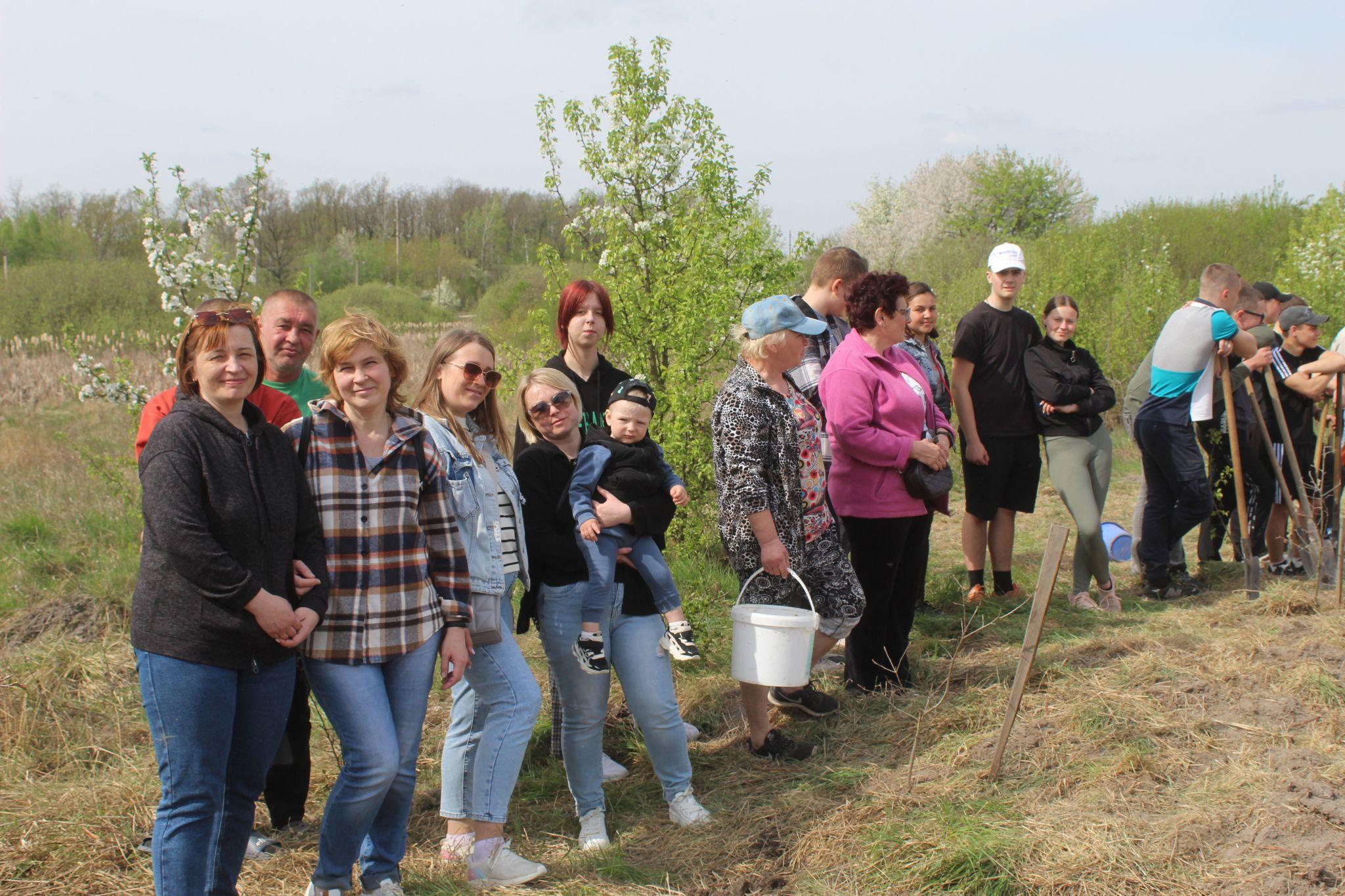 Садили молоденькі дубки на заздалегідь підготовленій земельній ділянці. Спочатку дорослі чоловіки розбили під шнурівку квадрати 6 Х 6. Потім хлопці й чоловіки викопували ями потрібного розміру, а дівчата й жінки підносили до лунок воду й засипали землею кореневу частину саджанців.