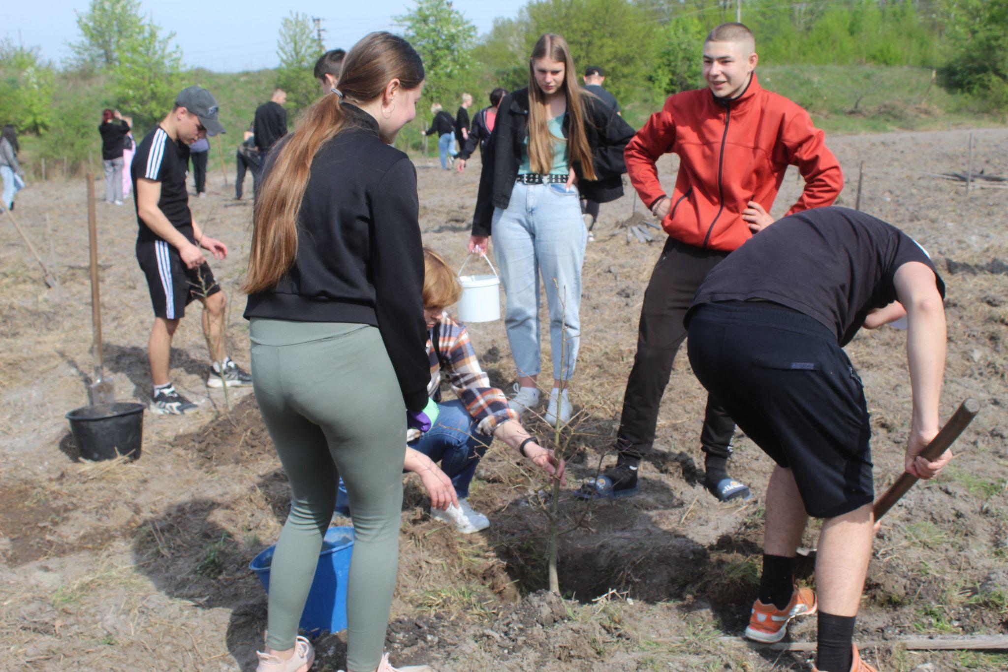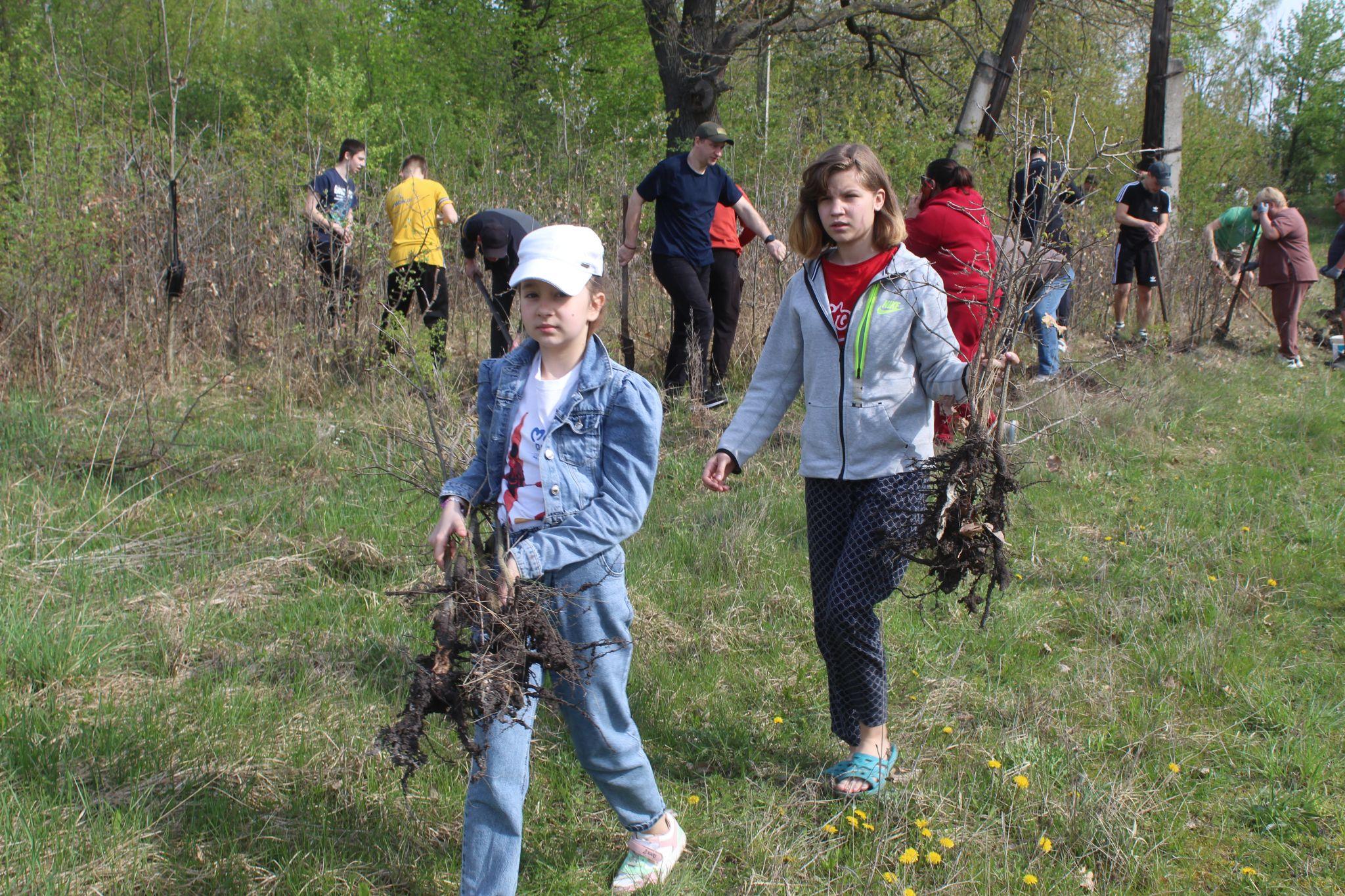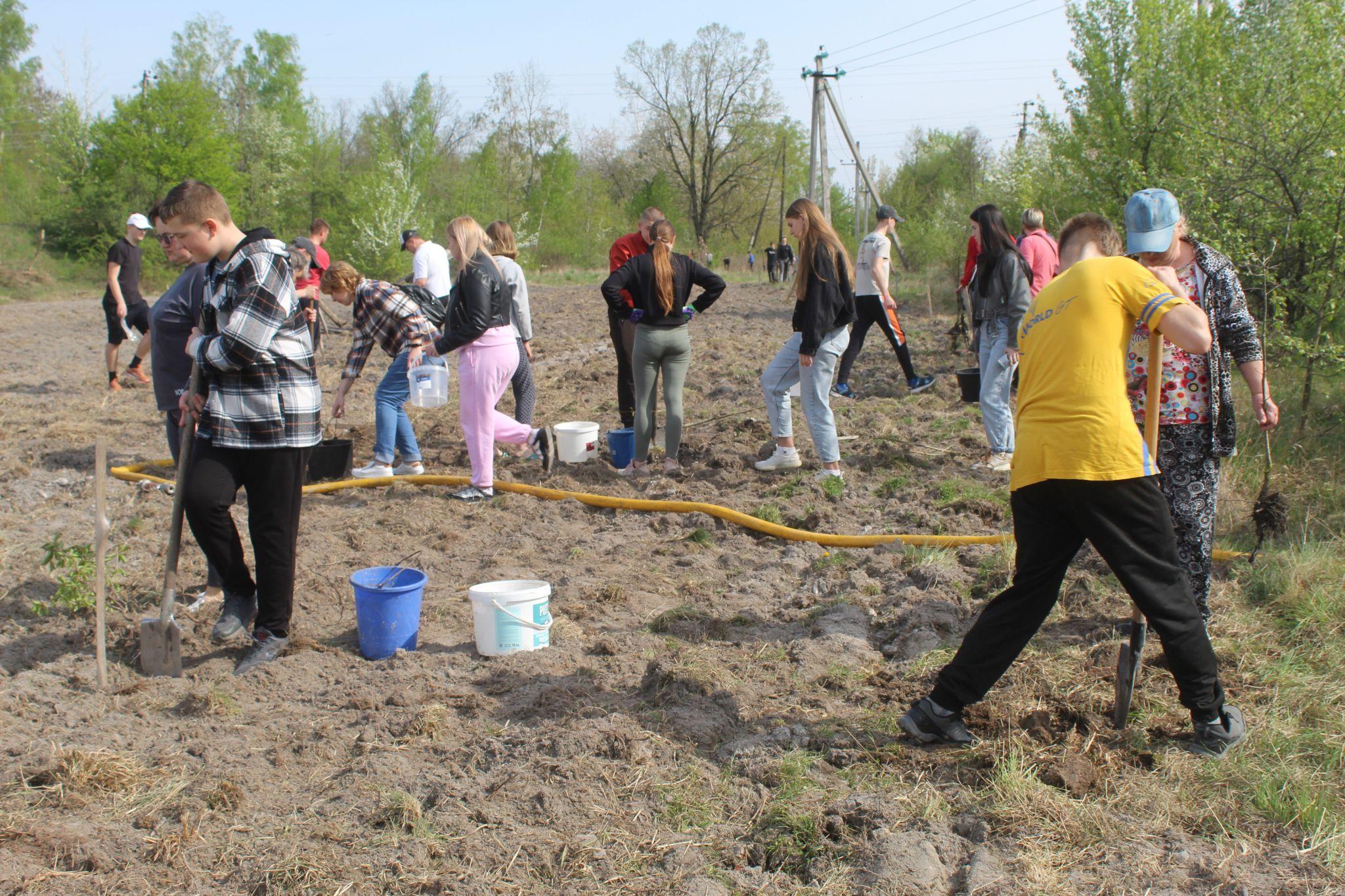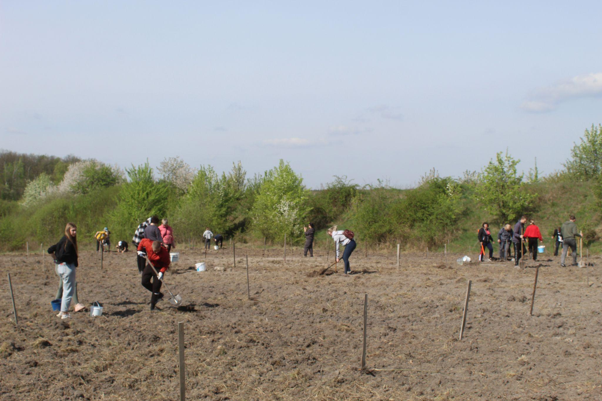 Садили молоденькі дубки на заздалегідь підготовленій земельній ділянці. Спочатку дорослі чоловіки розбили під шнурівку квадрати 6 Х 6. Потім хлопці й чоловіки викопували ями потрібного розміру, а дівчата й жінки підносили до лунок воду й засипали землею кореневу частину саджанців.