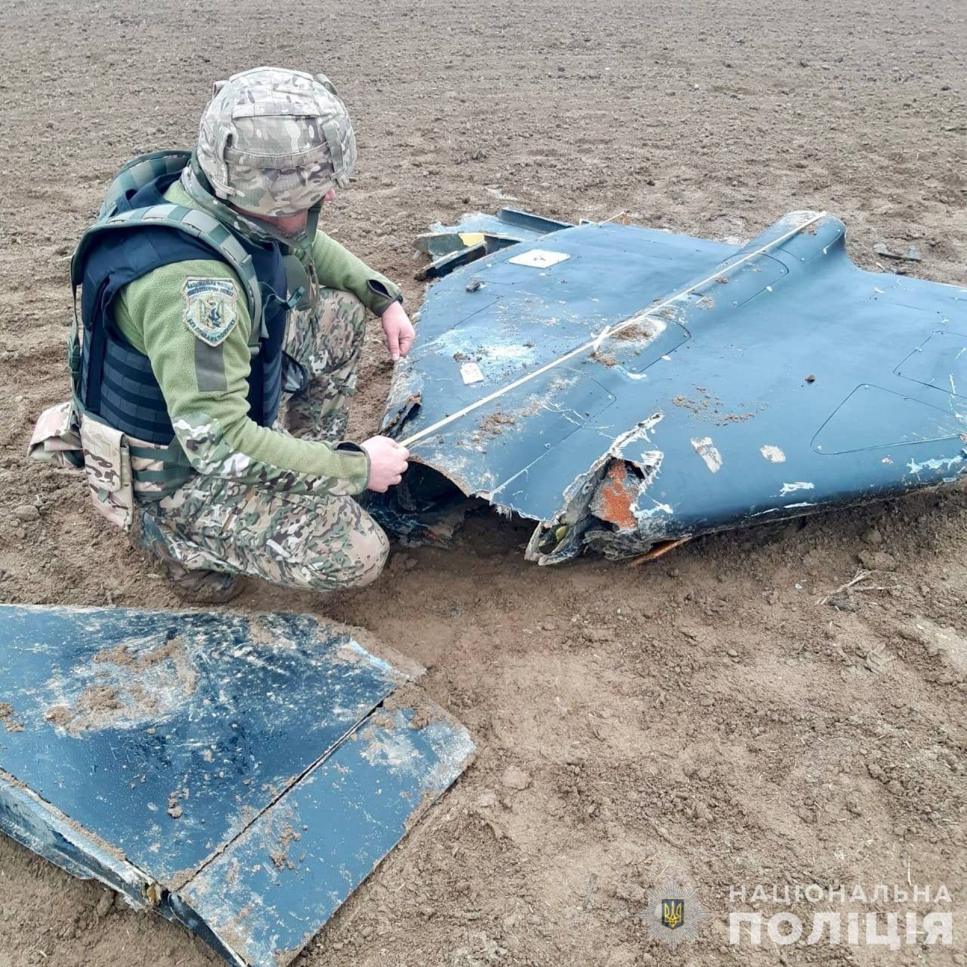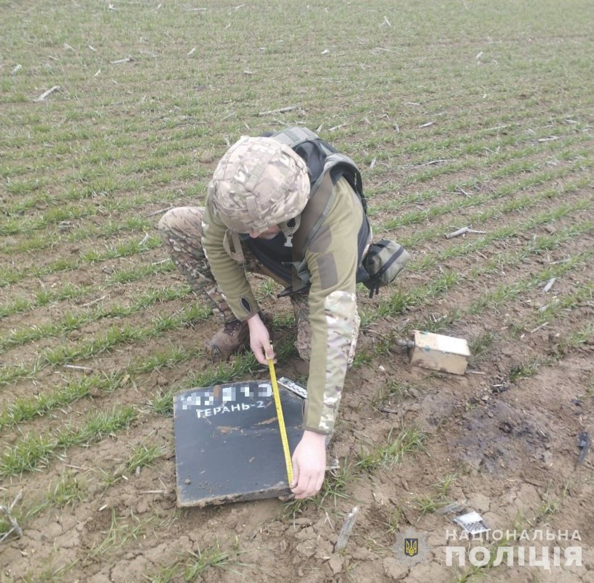 - Залишки збитого «Шахеда» виявили у полі 15 березня. Правоохоронці обстежили місце падіння БПЛА та оглянули його уламки.
