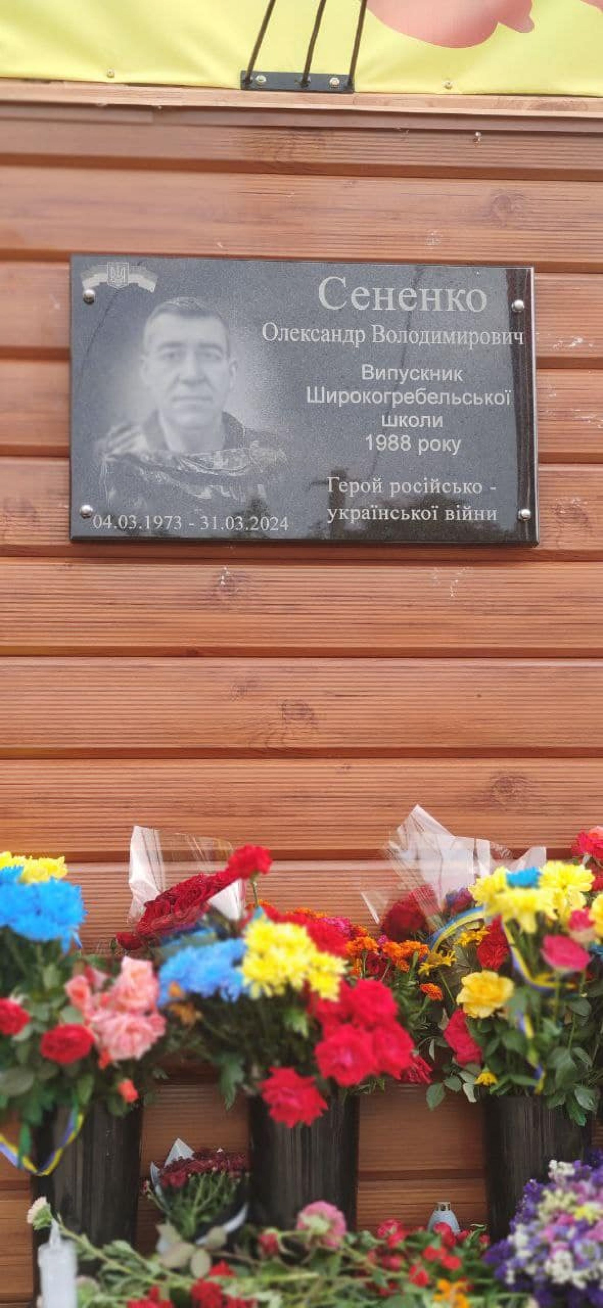 - У четвер, 29 серпня у Широкогребельській гімназії відбулося урочисте відкриття меморіальної дошки Олександру Сененку — випускнику гімназії, який загинув 31 березня 2024 року, захищаючи територіальну цілісність України