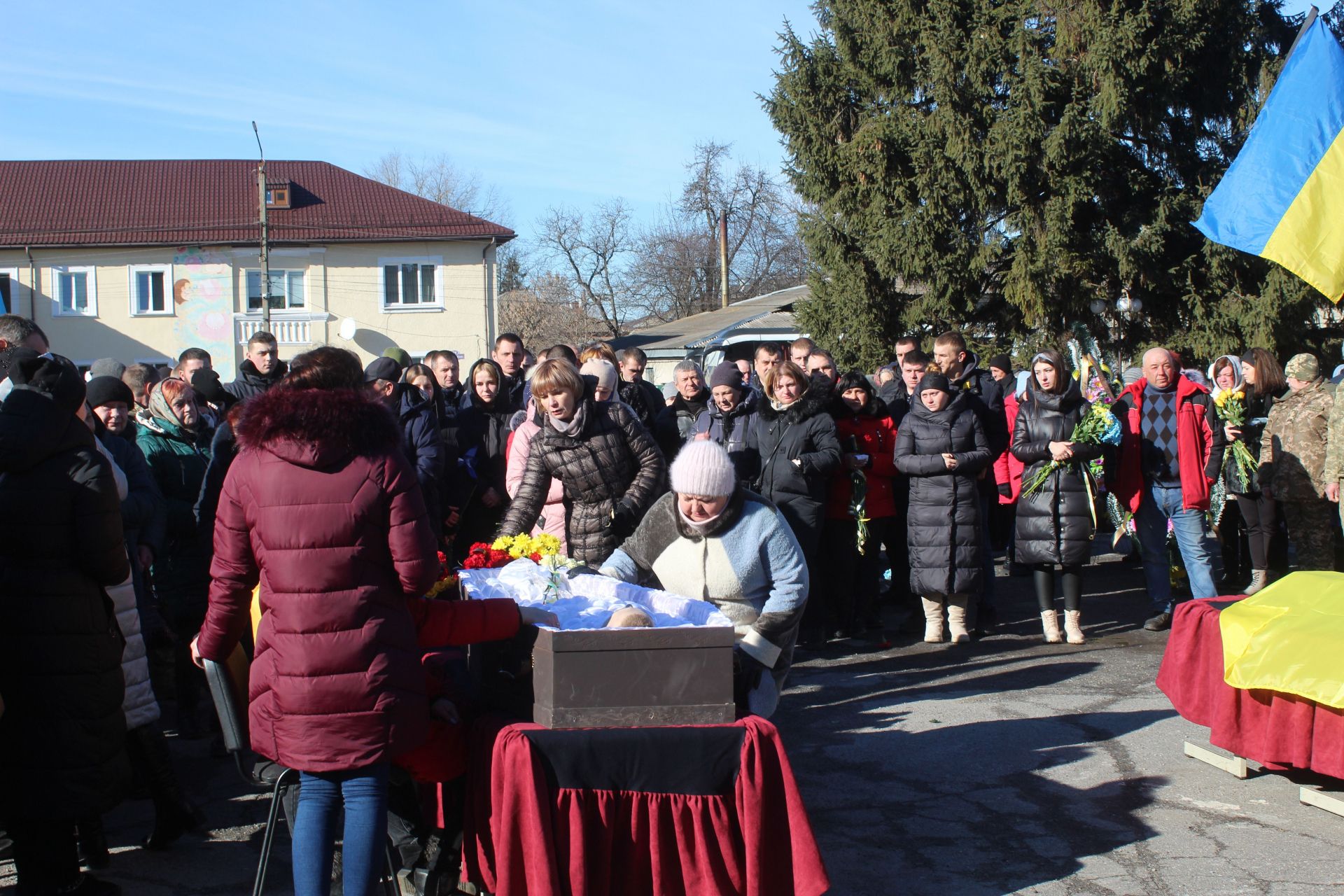 Перед похованням ще одну заупокійну молитву провів військовий капелан отець Іван. Востаннє мала можливість притулитися до свого сина мама Валентина, а тото Володі тримав для неї напоготові стакан води. Не стримувала сліз і кума загиблого воїна Вікторія. Вона казала, що Володю всі в селі поважали, а для неї він був не тільки хорошим кумом, а й найкращим другом.