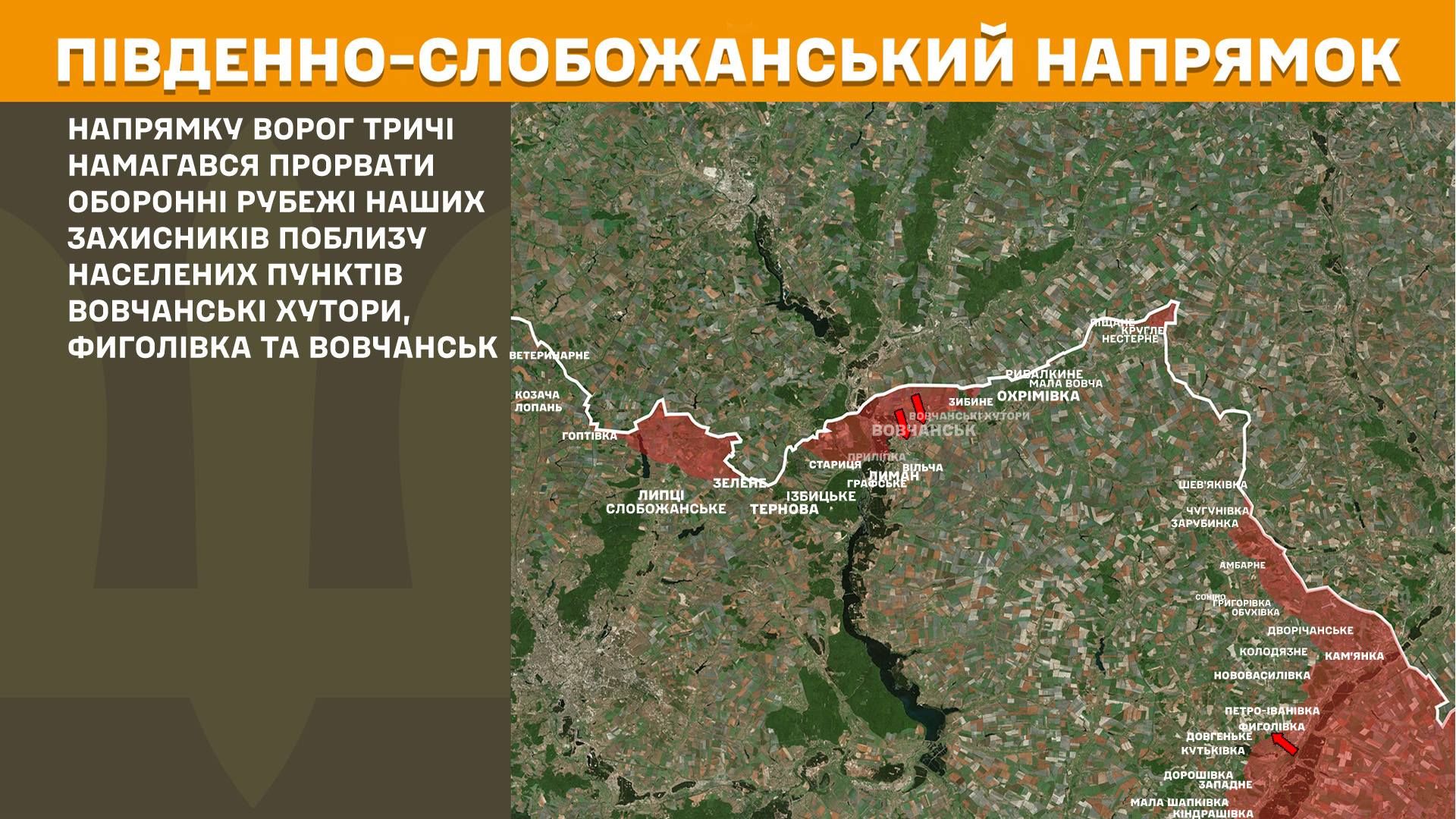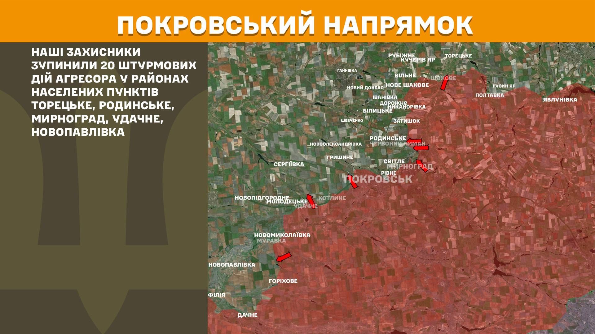 Найважча ситуація наразі зберігається на Костянтинівському напрямку, де воїни ЗСУ відбили 28 масованих атак поблизу Іванопілля, Клебан-Бика та Софіївки. Не менш гаряче було на Покровському та Гуляйпільському напрямках — там наші підрозділи припинили ще 38 спроб окупантів прорвати лінію оборони.