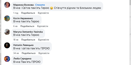 Вічна пам’ять та слава Герою! Щирі співчуття родині та близьким!