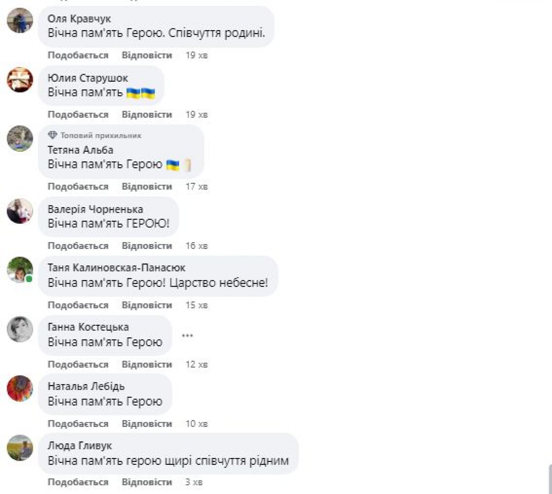 — Срашна звістка сколихнула нашу громаду. Приносимо щирі співчуття родині загиблого. Герої не вмирають! Додаткова інформація буде повідомлена згодом, — йдеться у повідомленні