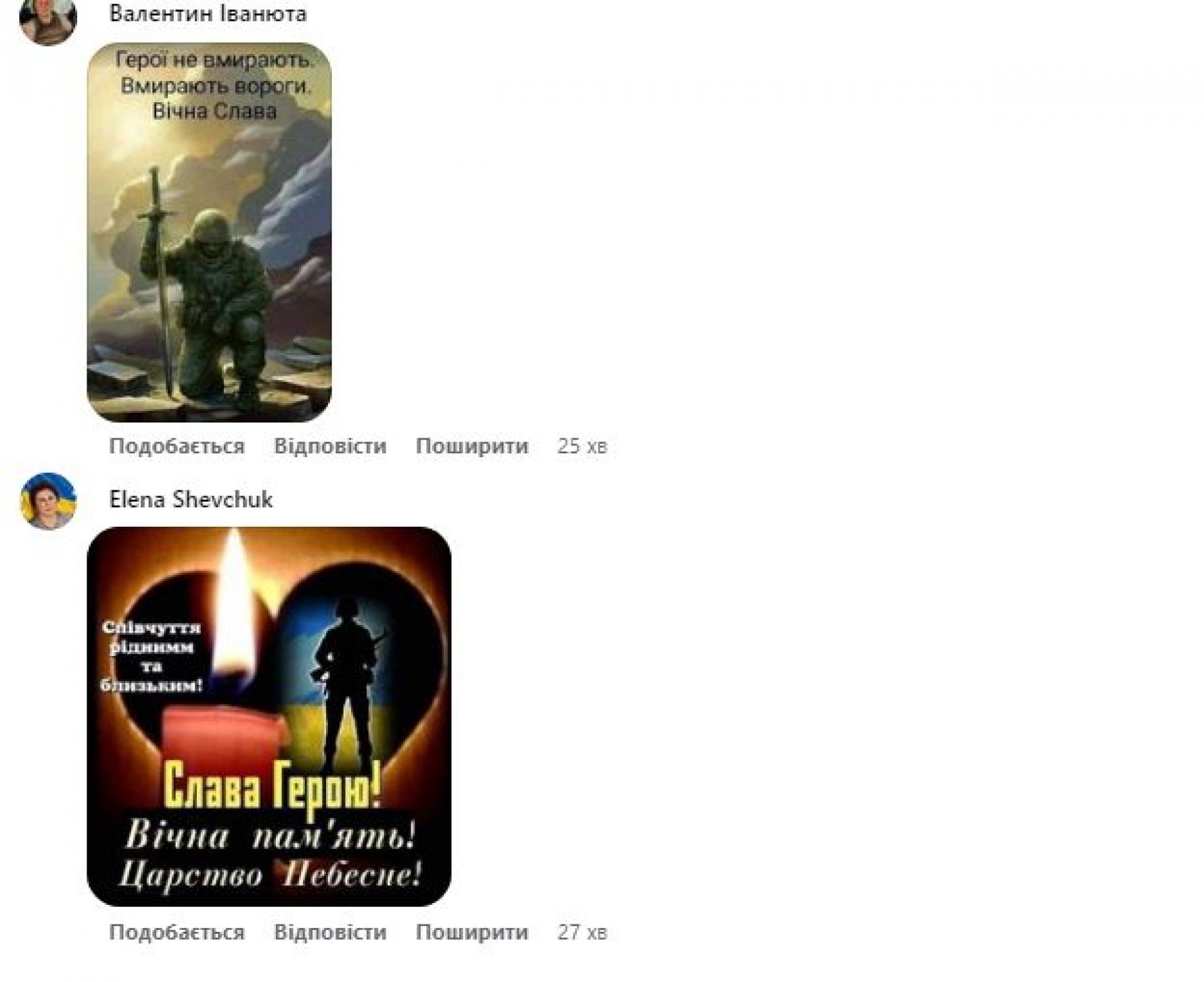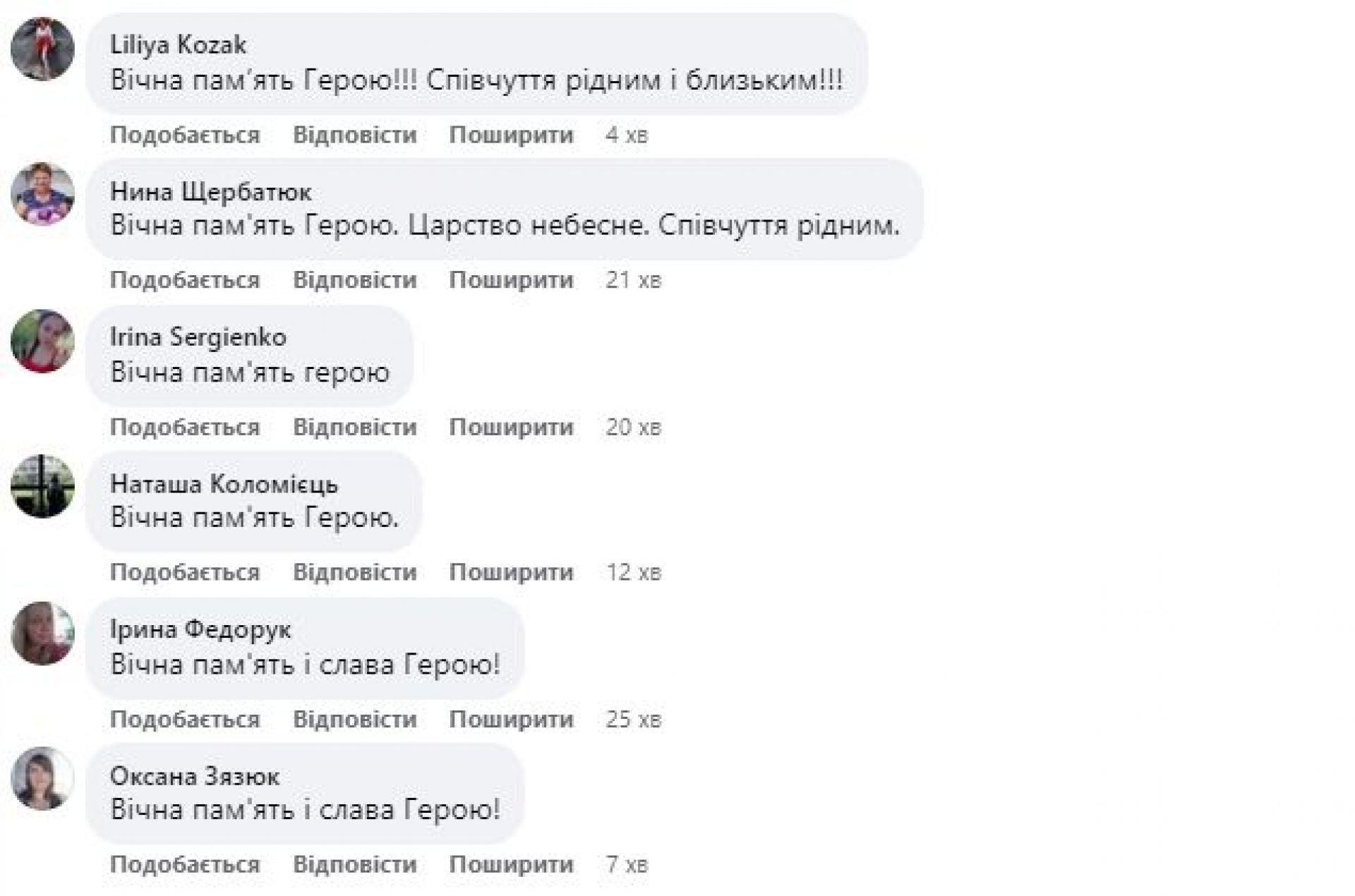 — Гірко й боляче усвідомлювати, що кращі сини України йдуть у Небесне військо. Такою високою і страшною є ціна нашої свободи. Щирі співчуття рідним та близьким загиблого Захисника. Разом з Вами схиляємо голови у глибокій скорботі…Вічна шана і пам’ять Герою! Нехай Господь прийме його світлу душу і оселить там, де праведні спочивають.Ми завжди будемо пам'ятати та шанувати подвиг наших земляків, які поклали життя, захищаючи територіальну цілісність та суверенітет нашої держави, — йдеться у повідомленні