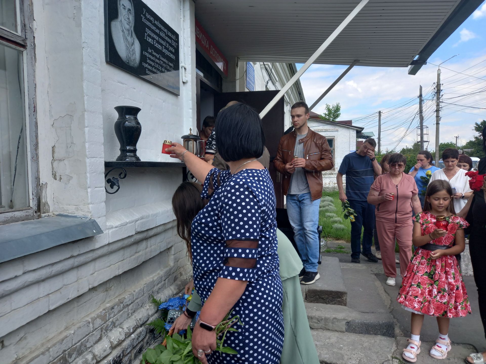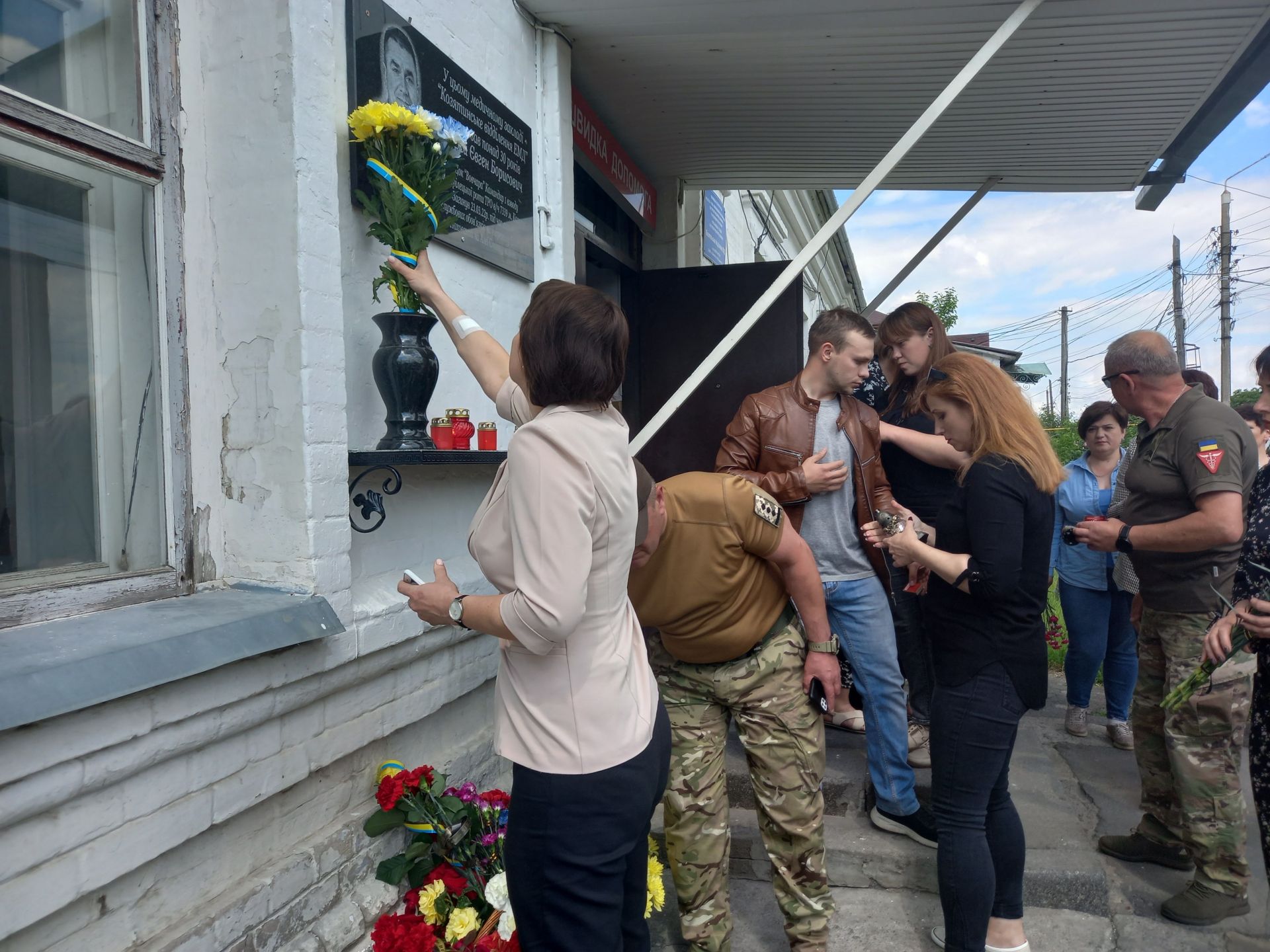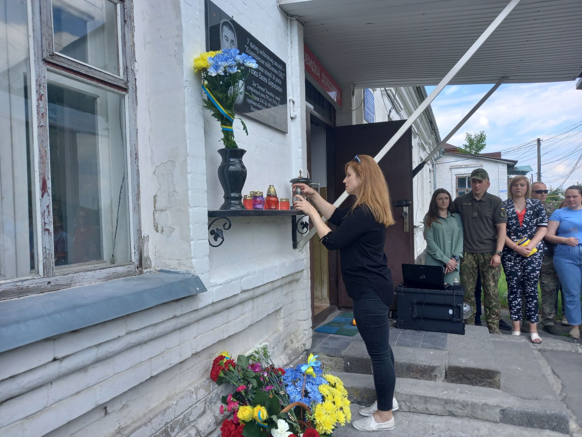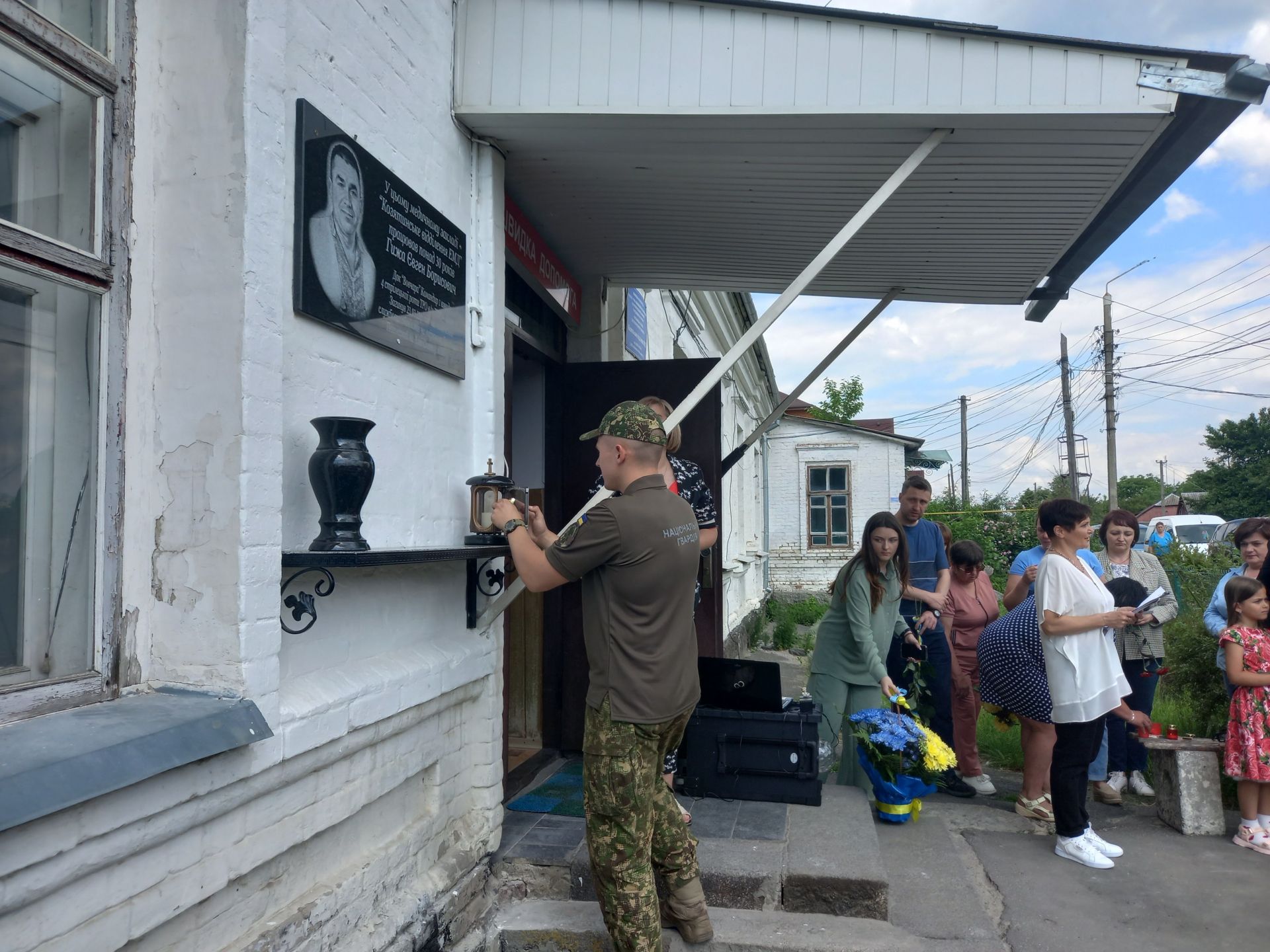 — Про втрати завжди говорити боляче, а коли із життя йдуть дуже близькі та дорогі тобі люди, говорити боляче вдвічі, — каже Олена Мисюра, ведуча заходу. — Сьогодні на фасаді медичного закладу Козятинське відділення екстреної медичної допомоги з’явиться дошка нашому земляку, командиру першого взводу четвертої стрілецької роти ТРО військової частини 7339 міста Козятин Євгенію Гижі. Людина з великої літери, Герой, козятинський захисник та медик високого рівня. Людина слова, який так любив життя та людей навколо.